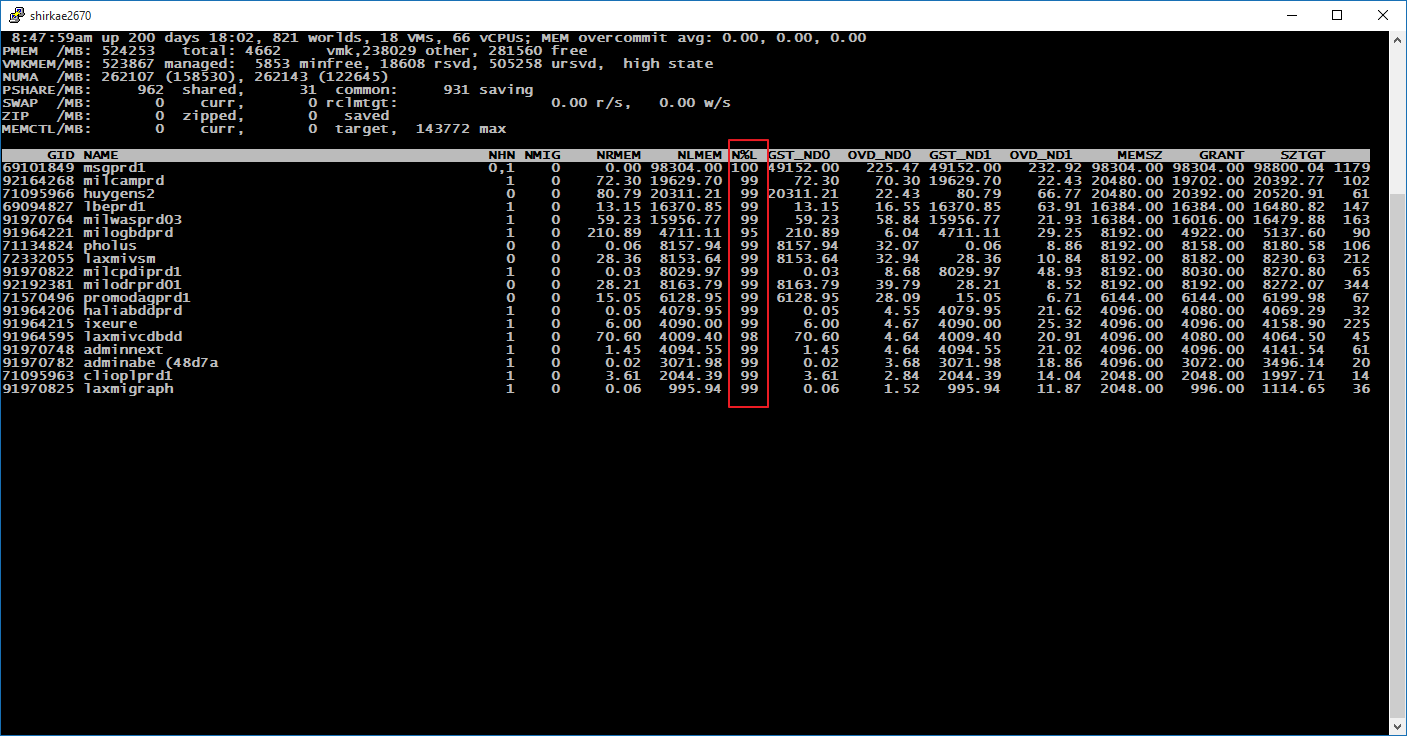 La colonne « N%L » correspond à la quantité de mémoire « localisée » c’est à dire la quantité de mémoire située sur la banque du processeur sur lequel se trouve la machine à l’instant T.