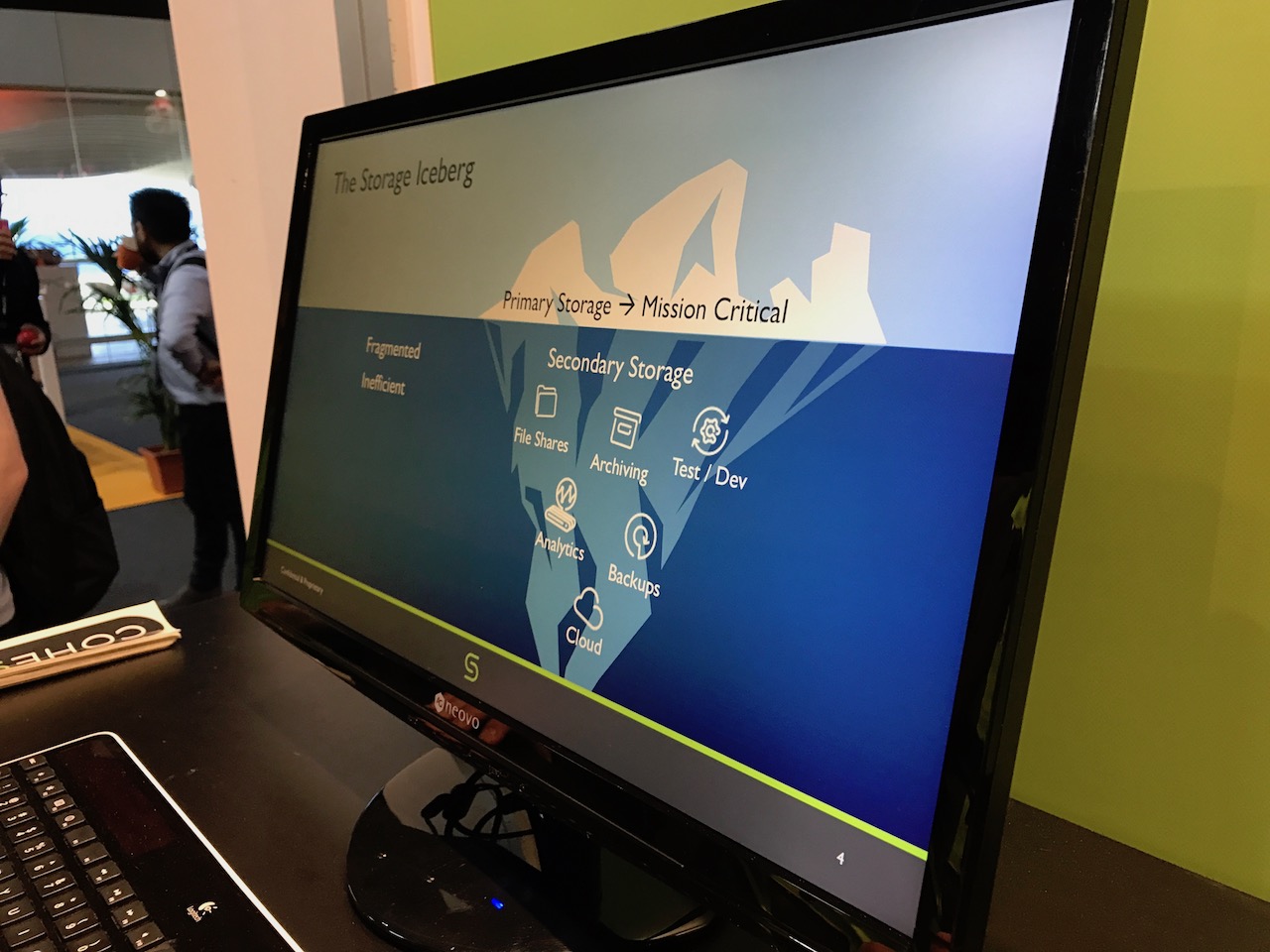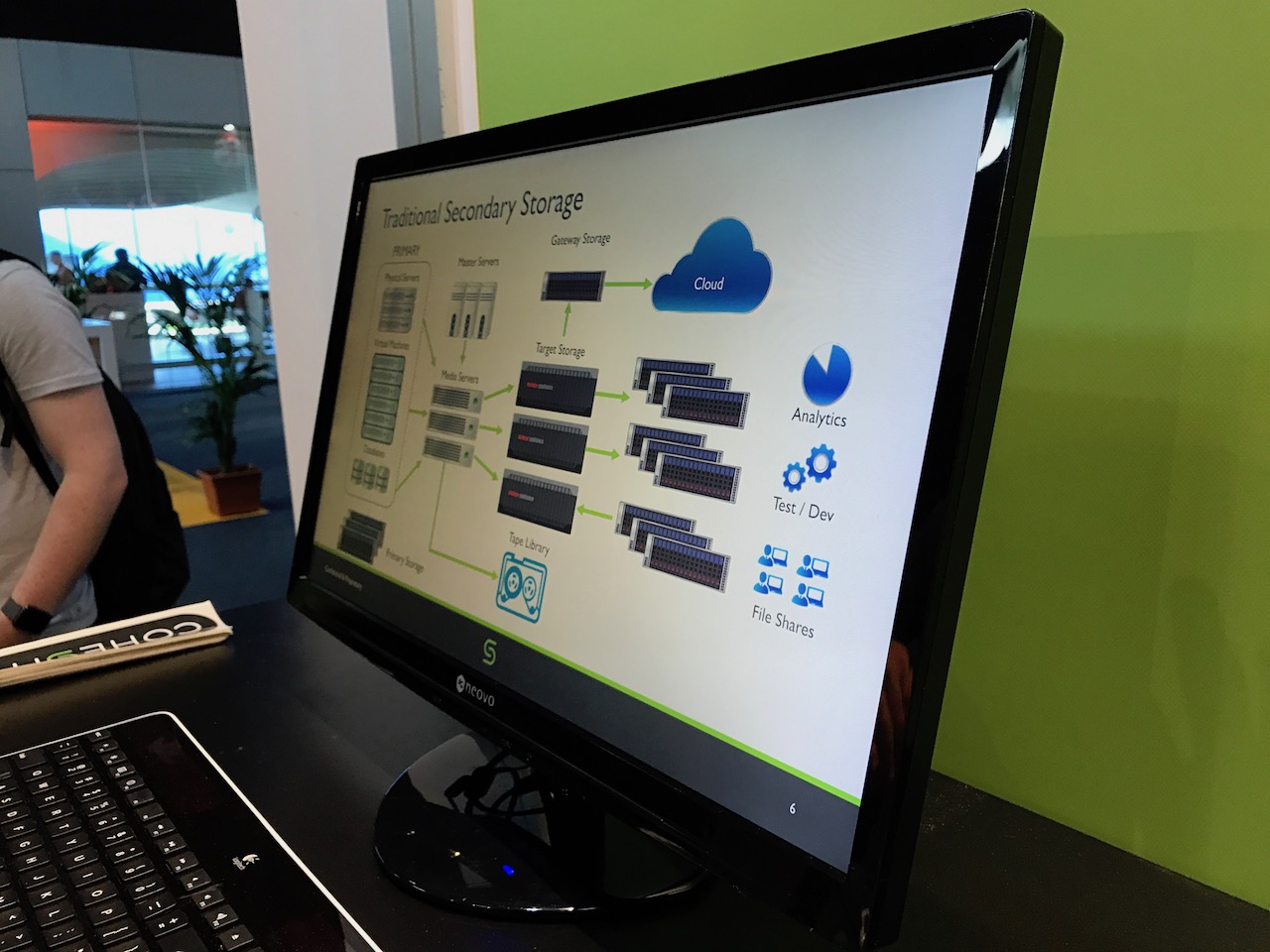 Contrairement à la plupart des offres du secteur, Cohesity s’attaque non seulement à la sauvegarde de VMs et de hosts physiques, mais entant aussi remplacer tout ou partie des autres types de stockage dit « secondaires » moins critiques, au moins en terme de performance : archives patrimoniales, filers, environnements de test et dev etc.