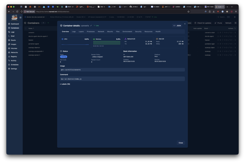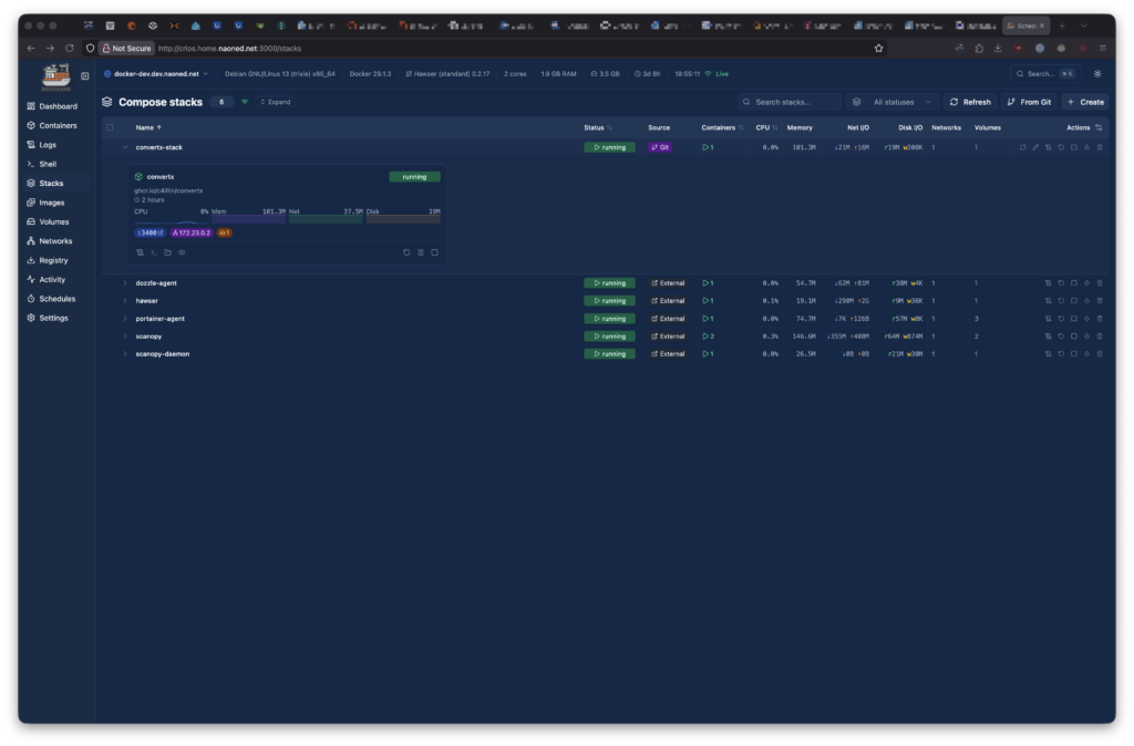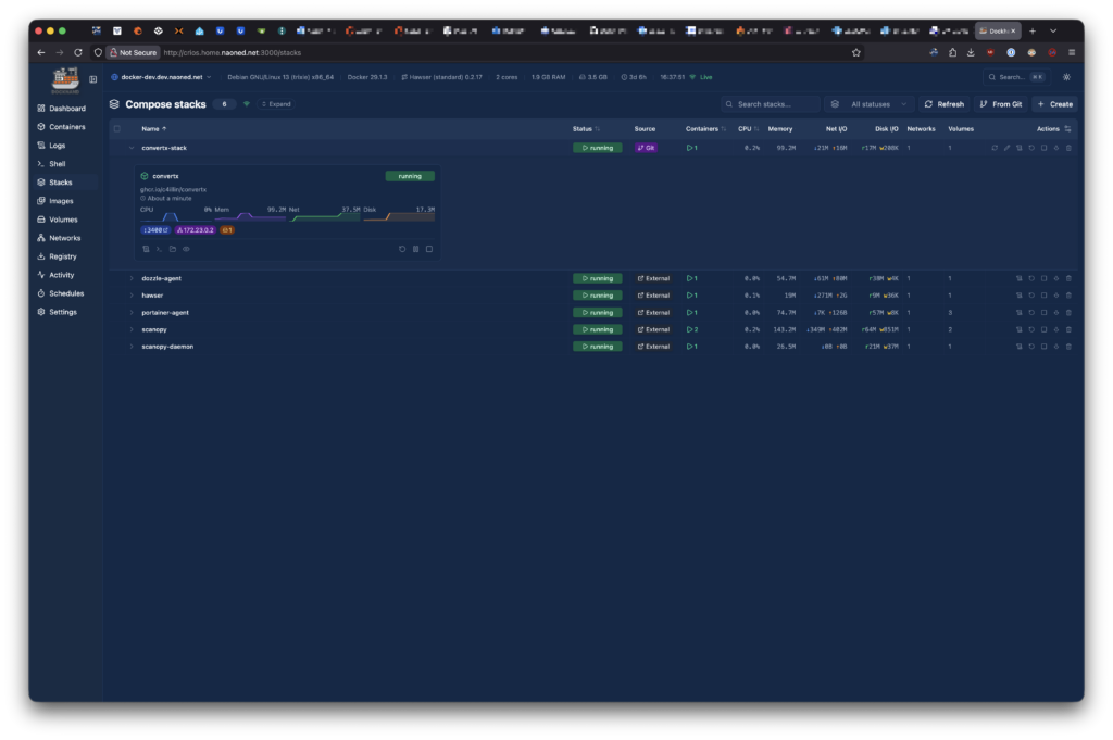 Encore une fois, l’interface fonctionnelle et réactive de DockHand est, à mes yeux, un vrai atout face à Portainer. Ceci dit, Portainer conserve un avantage certain avec sa couverture étendue de Kubernetes et Swarm, ce qui n’est pas rien.