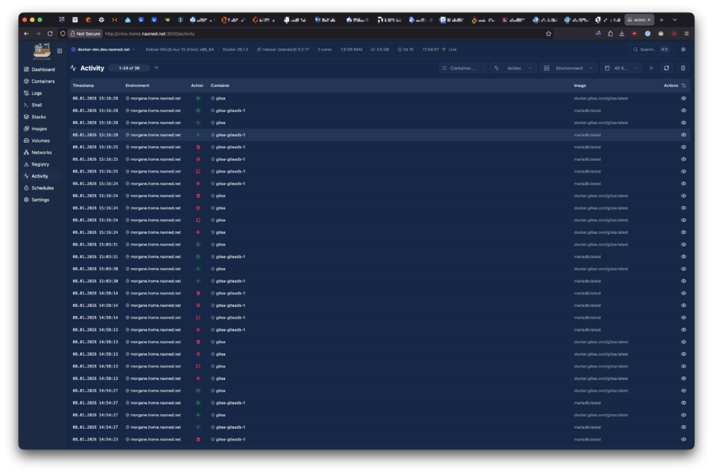 Ni une ni deux, j’ai plongé tête la première dans un deep dive de ce nouvel outil, toutes affaires cessantes (malgré d’autres articles en cours). Et je peux désormais vous le confirmer : DockHand est un petit bijou, à condition de rester dans l’écosystème de la conteneurisation sans s’attaquer à des solutions technologiques bien plus vastes et complexes, comme Kubernetes. Non seulement il reprend toutes les fonctionnalités de Portainer, mais il y ajoute une élégance et une rapidité qui m’ont définitivement conquis.
