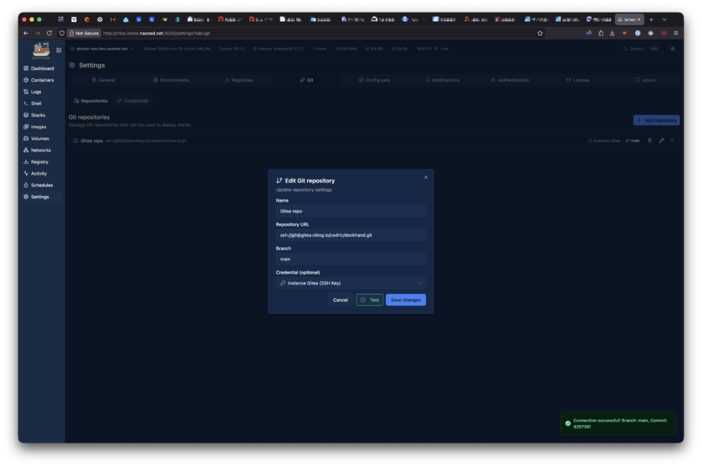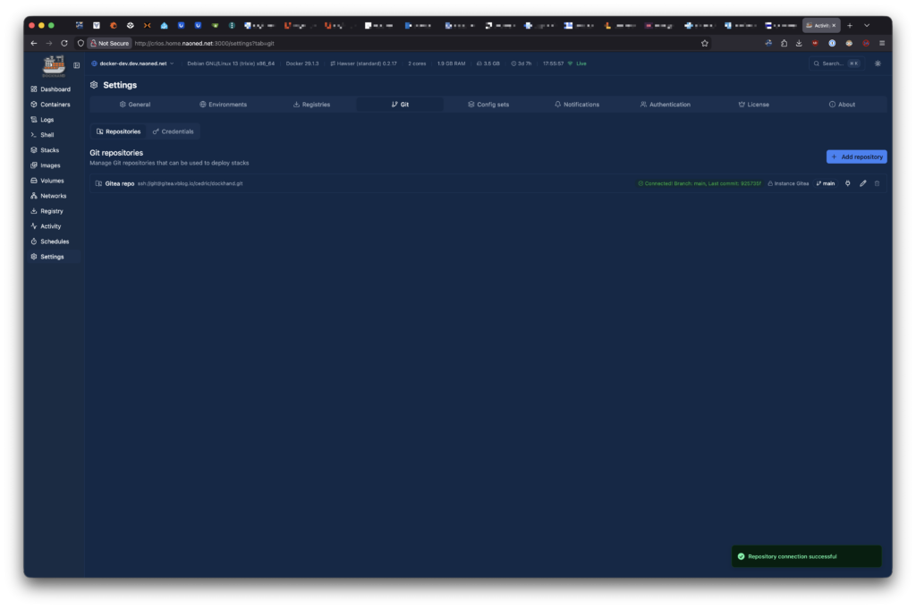 En quête d’une alternative mieux adaptée à mes besoins, j’ai découvert il y a peu de temps DockHand : un gestionnaire de conteneurs, spécialement conçu pour les environnements Docker, extrêmement rapide, avec d’une ergonomie particulièrement affutée et, cerise sur le gâteau, équipé d’un outil intégré de développement couvrant une grande partie des fondamentaux des pipelines CI/CD — ces mêmes fonctionnalités qui font la force d’outils comme ArgoCD, Jenkins ou SemaphoreUI (pour n’en citer que quelques-uns, car il y en a tellement !).