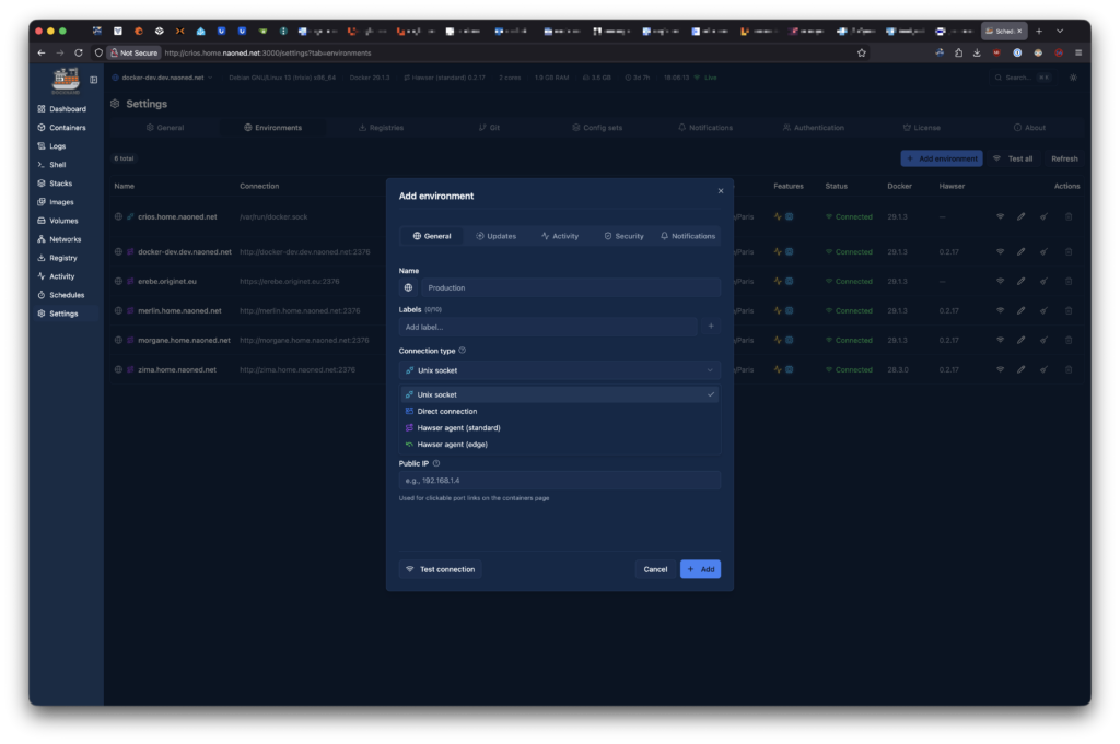 Ainsi, vous pouvez choisir le type de connexion le mieux adapté à votre usage et à vos exigences de sécurité. Bien sûr, il est possible d’établir une liaison réseau en HTTP ou HTTPS avec l’agent Hawser.
