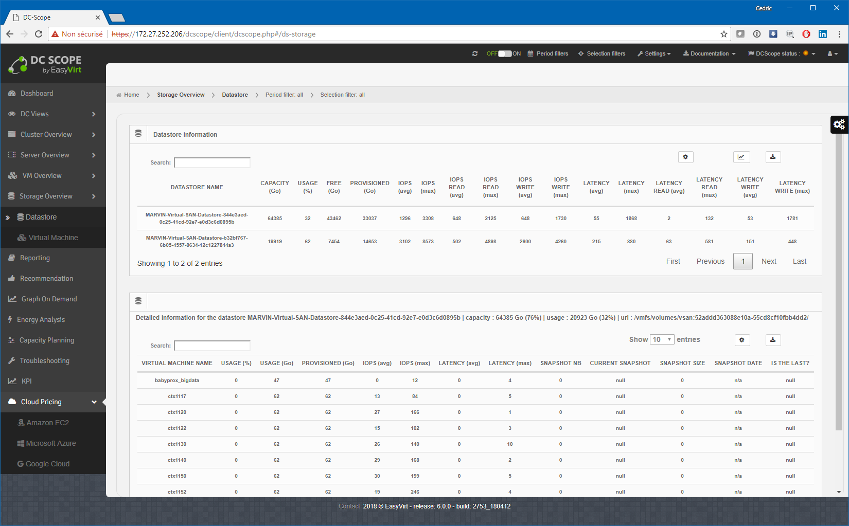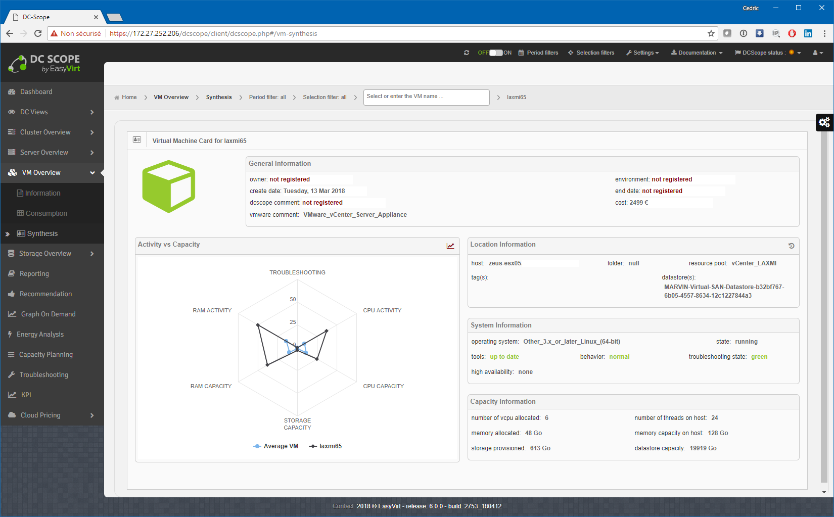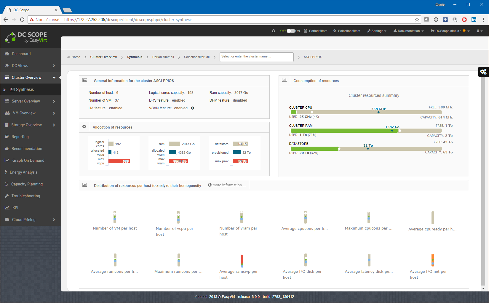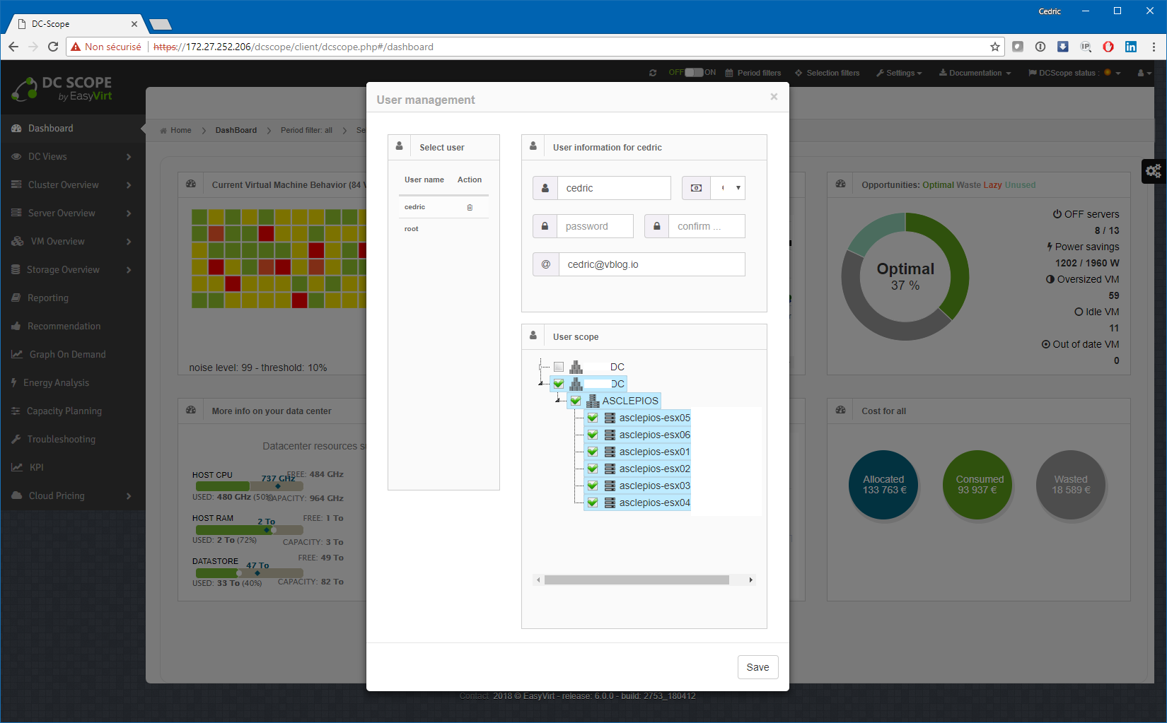 Bonjour à tous ! Vous le savez sans doute maintenant, nos chouchous de la Nantes’tech, Easyvirt, qui, au passage, étaient présent au dernier VMug Nantes, travaillent d’arrache-pied à améliorer continuellement leur produit phare, DCScope, si bien que son cycle de mise à jour est relativement rapide avec une version majeure tous les 8/10 mois environ. Et justement, Martin et son équipe m’ont encore fait l’honneur tout récemment de tester en avant-première leur nouvelle version « v6 » qui devrait arriver en GA dans les prochains jours. Pour ceux qui n’ont pas eu l’occasion de lire mes précédents billets sur cet excellent produit de monitoring et capacity planning d’environnements vSphere, rendez-vous tout de suite ici et ici) avant de lire la suite. S’t’un’ordre !
