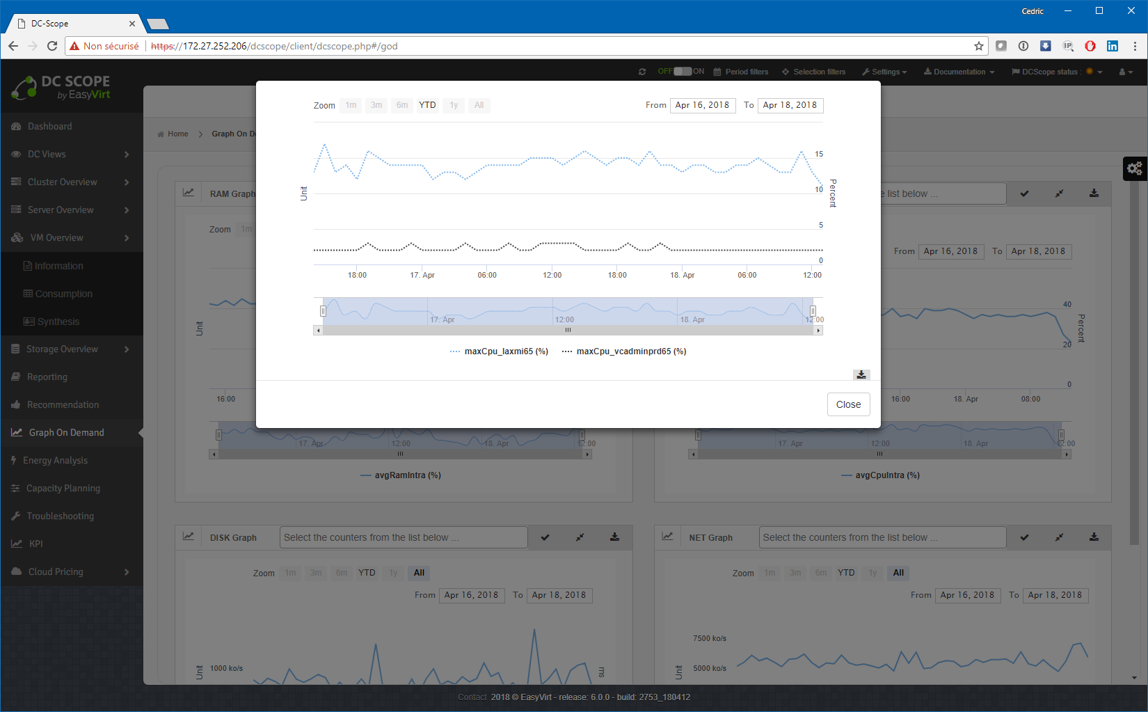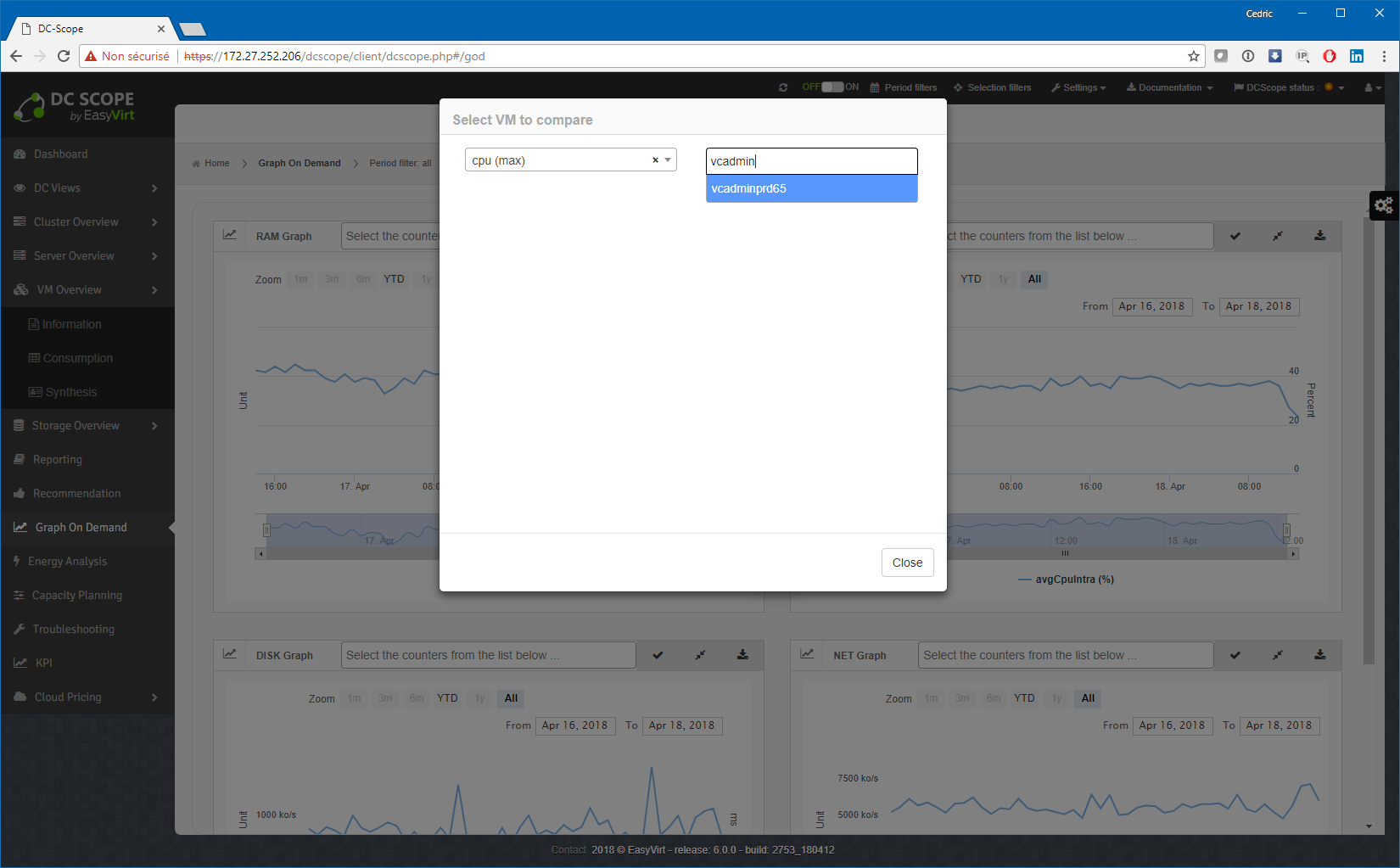 Une nouvelle fonction de comparaison/superpositions de courbes entre deux VM fait son apparition. La aussi ce sont les premiers pas d’un outil de diagnostic comparatif, que j’utilise quotidiennement ou presque sur vRealize Operations : la consolidation multi-VM.