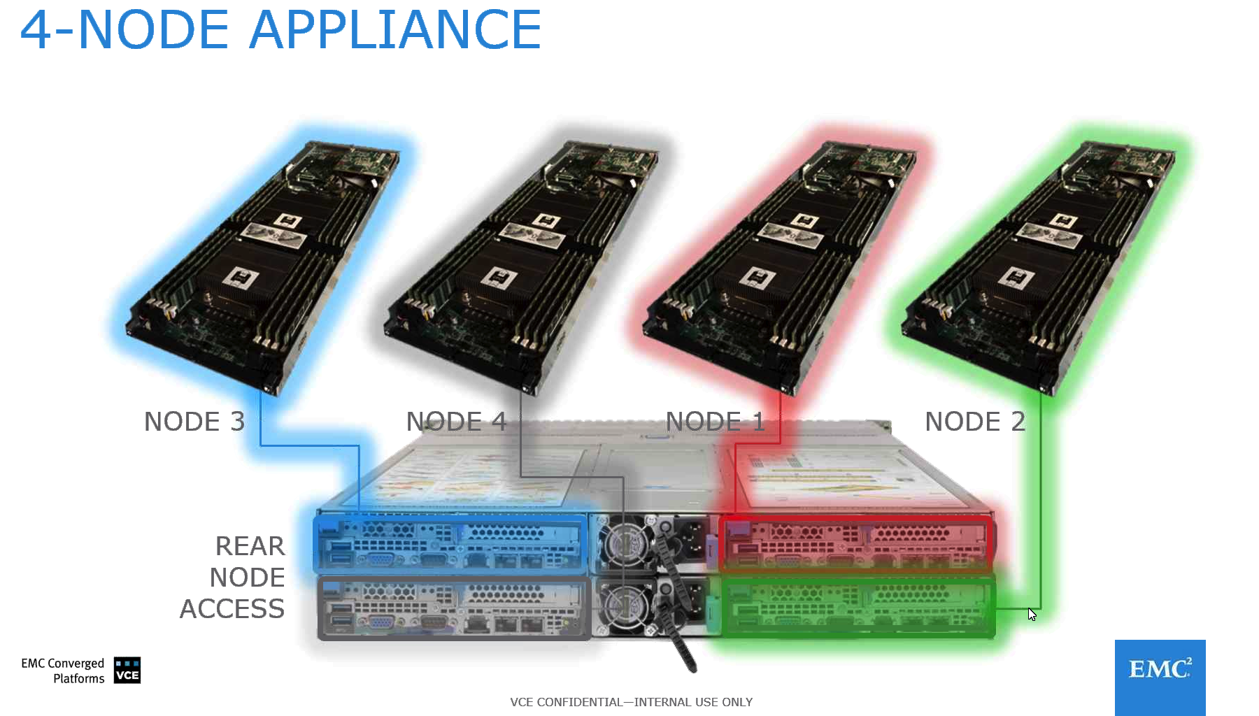 VxRAIL est basée sur une appliance très dense constituée de 4 serveurs et d’une baie disque frontale pouvant contenir jusqu’à 24 disques (6 disques par serveur). Jusque là, rien de bien original, cela ressemble beaucoup au form-factor des appliances de Nutanix, notamment. On retrouve aussi – bizarrement ^^ – le hardware de VxRACK, la fameuse solution a peu près équivalente à VxRAIL chez EMC, mais motorisée par ScaleIO coté stockage.