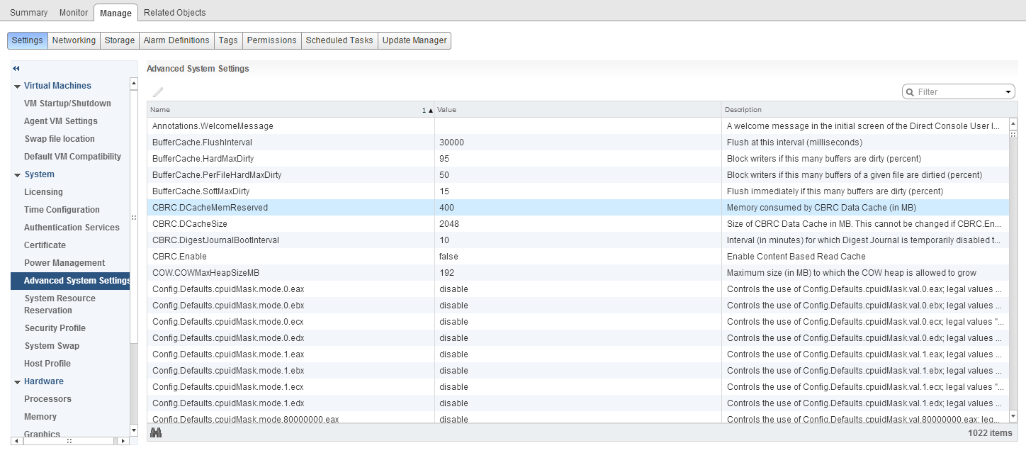 Intrinsèquement, chaque ESXi est capable de prendre en compte des dizaines et des dizaines paramètres avancés spécifiques. On les trouve en général dans la section « Advanced System Settings » de chaque machine.