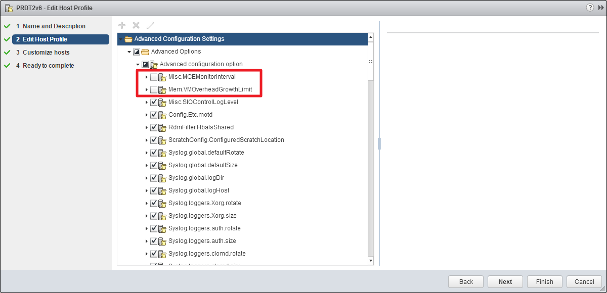 – Déclarer ces options de configuration dans le host profile, section « advanced configuration » en positionnant une valeur artificielle quelconque