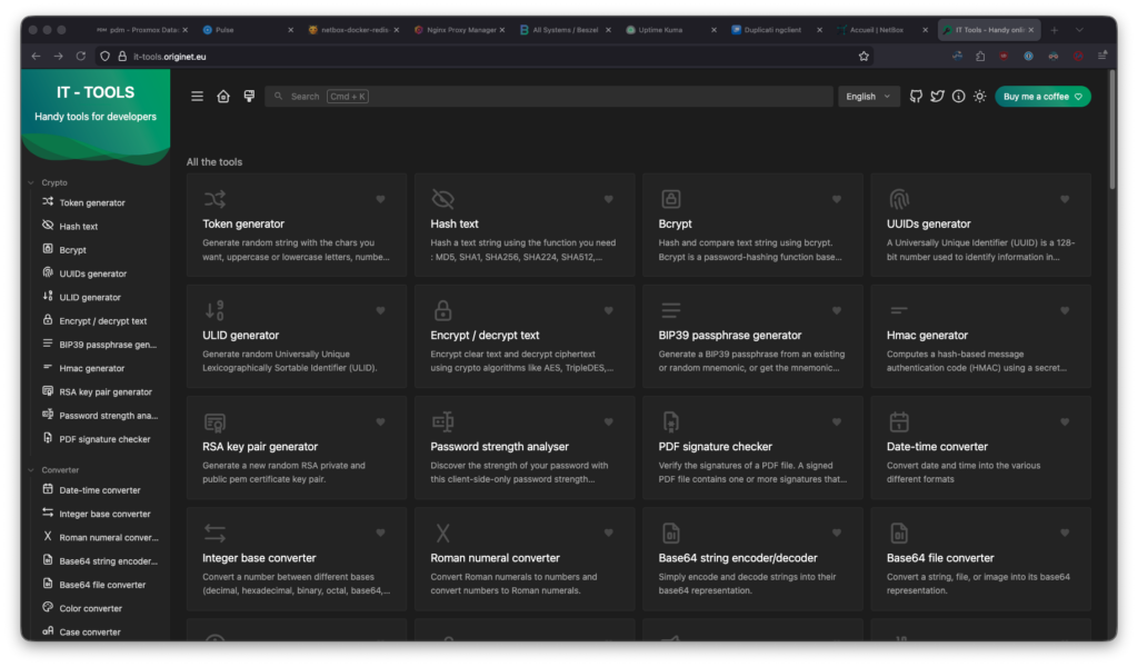 | IT-Tools | Boîte à outils pour réseaux et sysadmin | Tout-en-un, prêt à l’emploi | CorentinTh/it-tools |