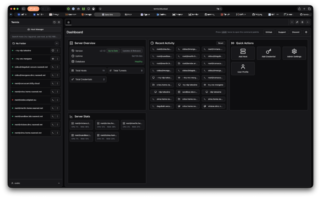 Bonjour bonjour les zamis ! Aujourd’hui, un outil qui ressemble un peu à un bastion et qui rappelle Guacamole (il en reprend un composant, mais il est encore un peu jeune pour l’instant…) : Termix !