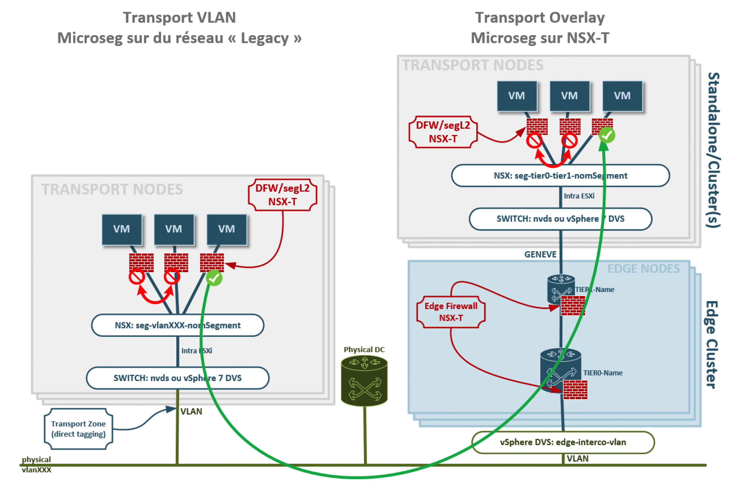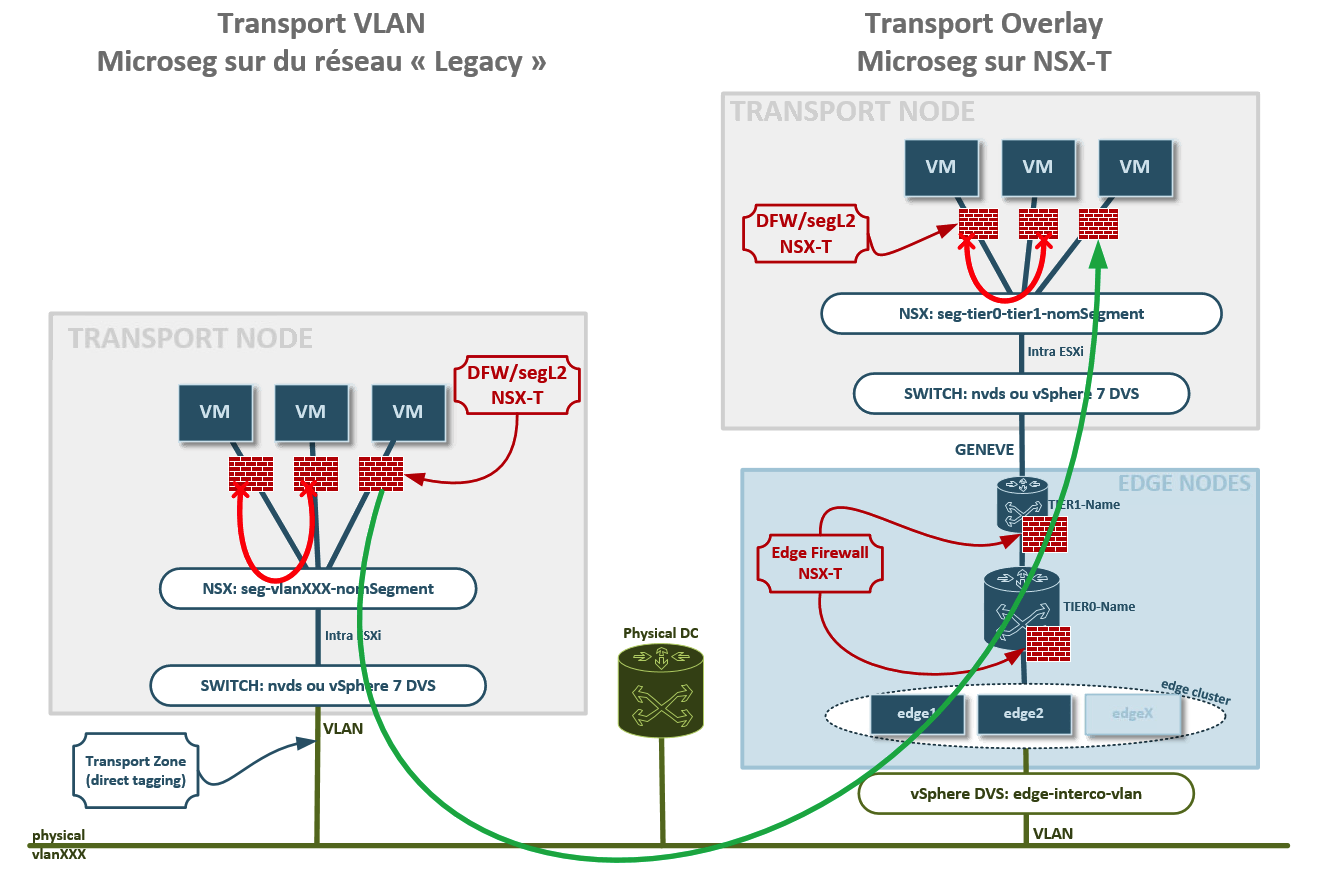 nvds ou dvSwitch v7 : effectivement, depuis vSphere 7, les transport nodes sont capable de s’appuyer directement sur les distributed vSwitchs plutôt que les nvds, connus depuis longtemps sur NSX-T. C’est une précision importante, mais qui a un coût en terme de lisibilité, brouiller un peu les pistes des équipements logiques traversés, en fonction de la version de vos environnements.