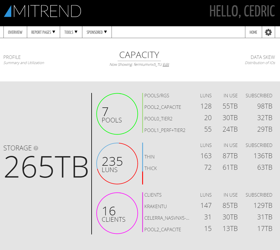 Une nouvelle fonction a en outre fait son apparition : la possibilité de consulter directement votre rapport via le site web, sans avoir à télécharger les PPT associés. L’ergonomie est parfaite et permet en un coup d’oeil de faire le tour de l’activité d’un composant et d’en disposer sur toute plateforme avec un simple accès à Internet. Voici quelques copies d’écran de l’interface de reporting VNX :