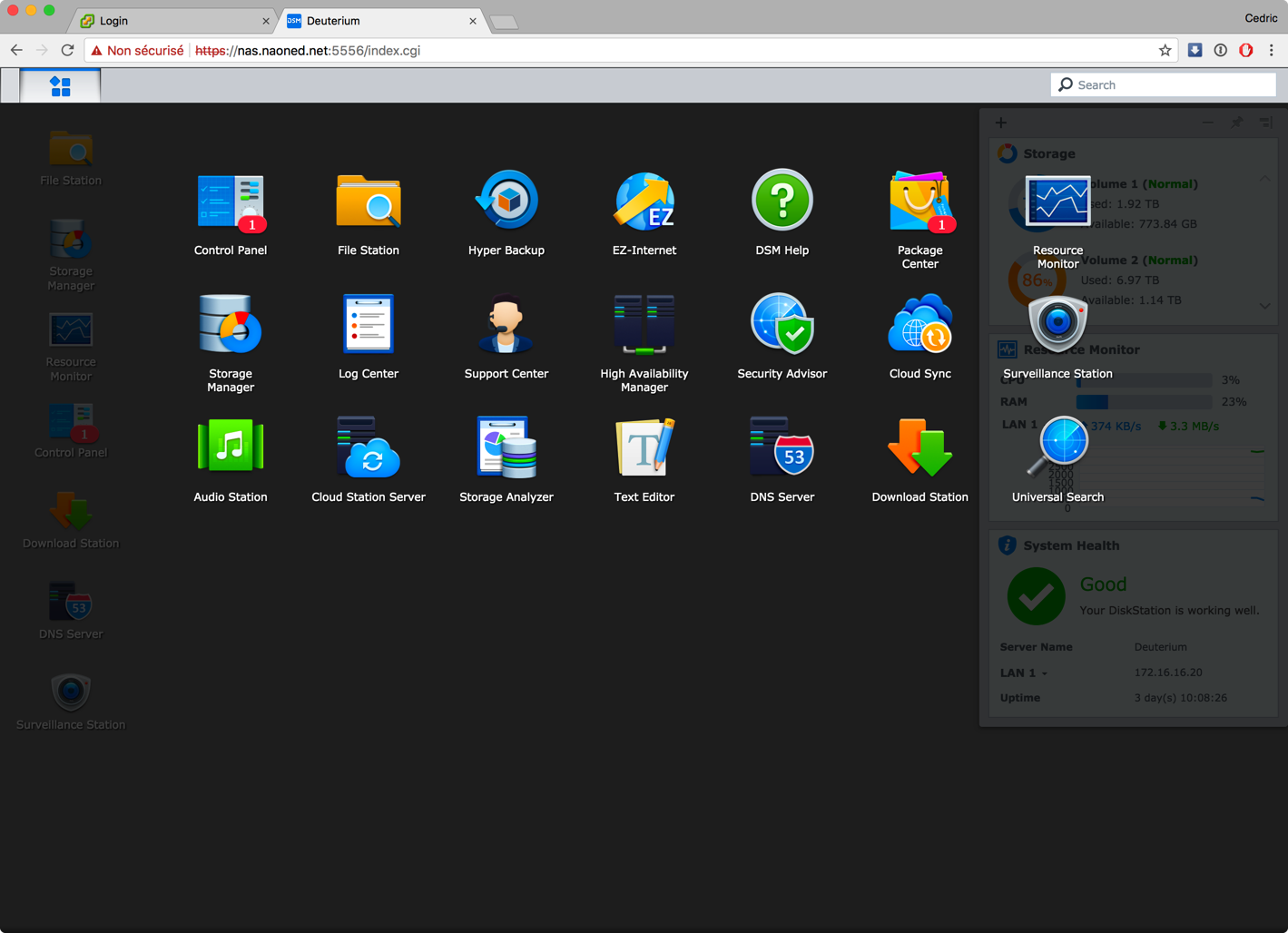 Histoire de vous convaincre, je vous propose de découvrir la version 7.2 via une opération réalisée récemment sur mon vLab : mise à jour de version (de 7.1 à 7.2) et déménagement du logiciel depuis une VM dédiée vers mon NAS Synology.