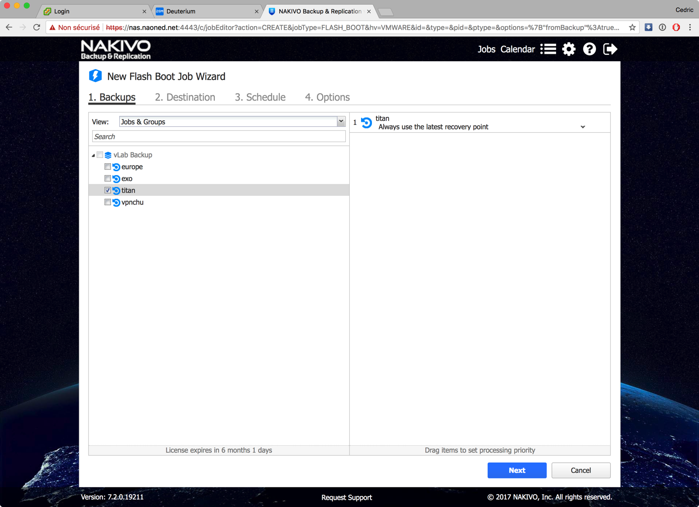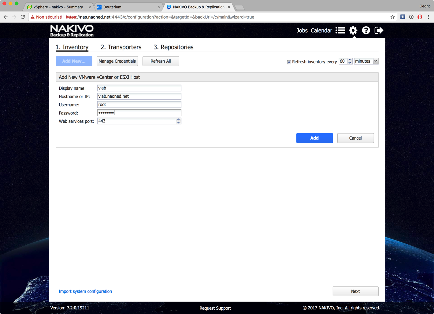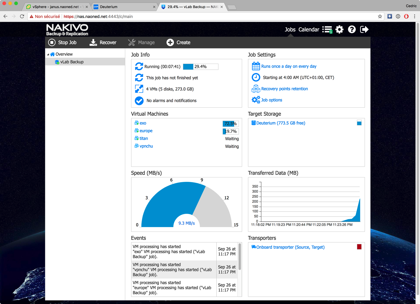 J’utilise depuis quelques mois de Nakivo B&R sur mon vLab pour sauvegarder mes divers environnements (en commençant par mes VM du quotidien : routeur, media server etc.). Cela me permet de suivre les évolutions du produit tout en sécurisant mes machines.
