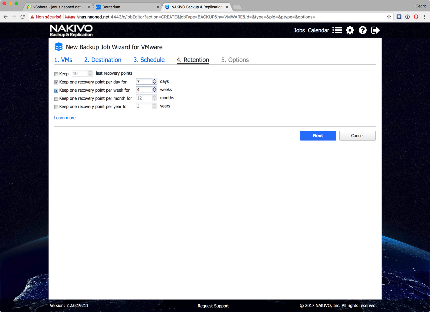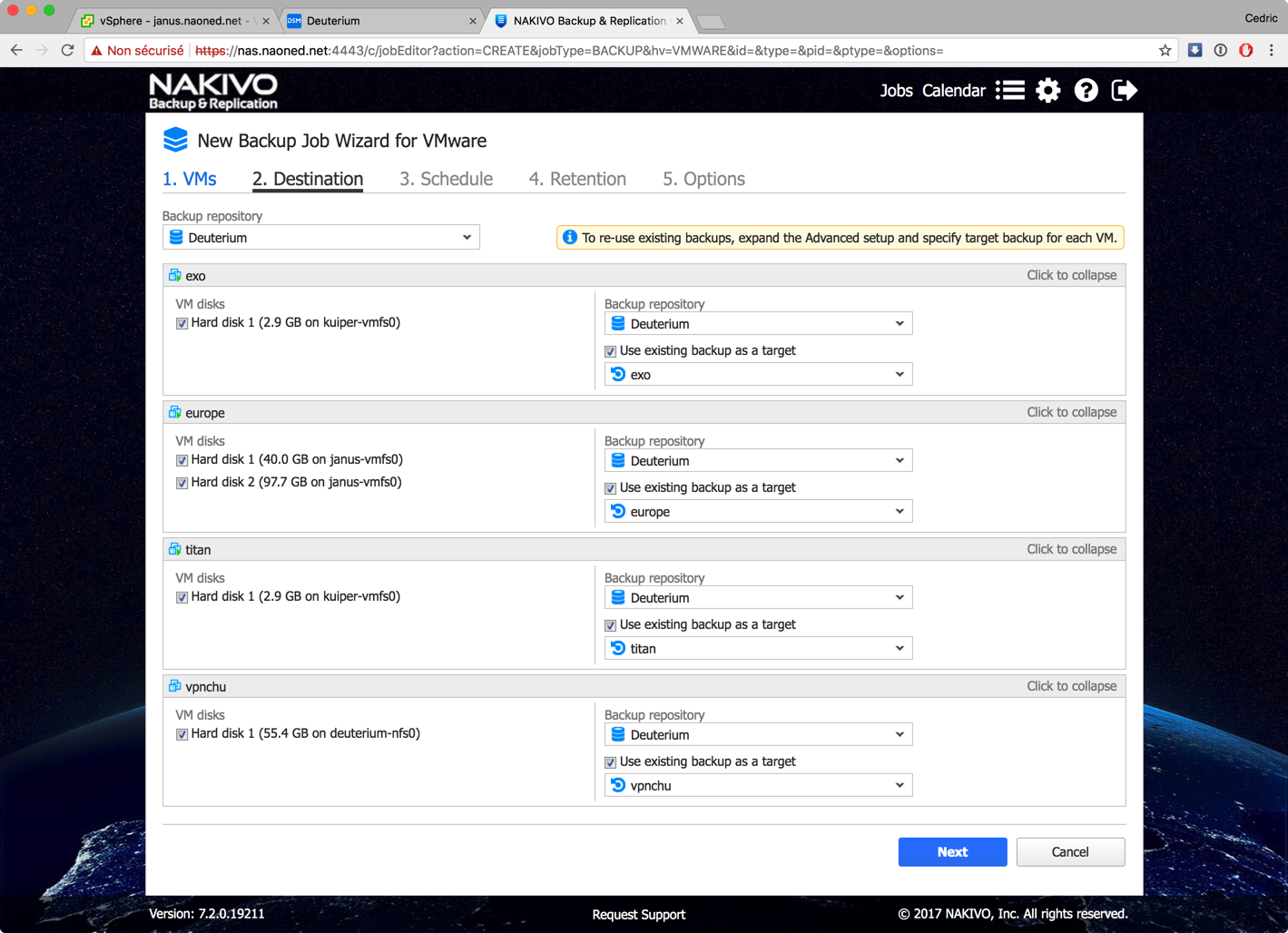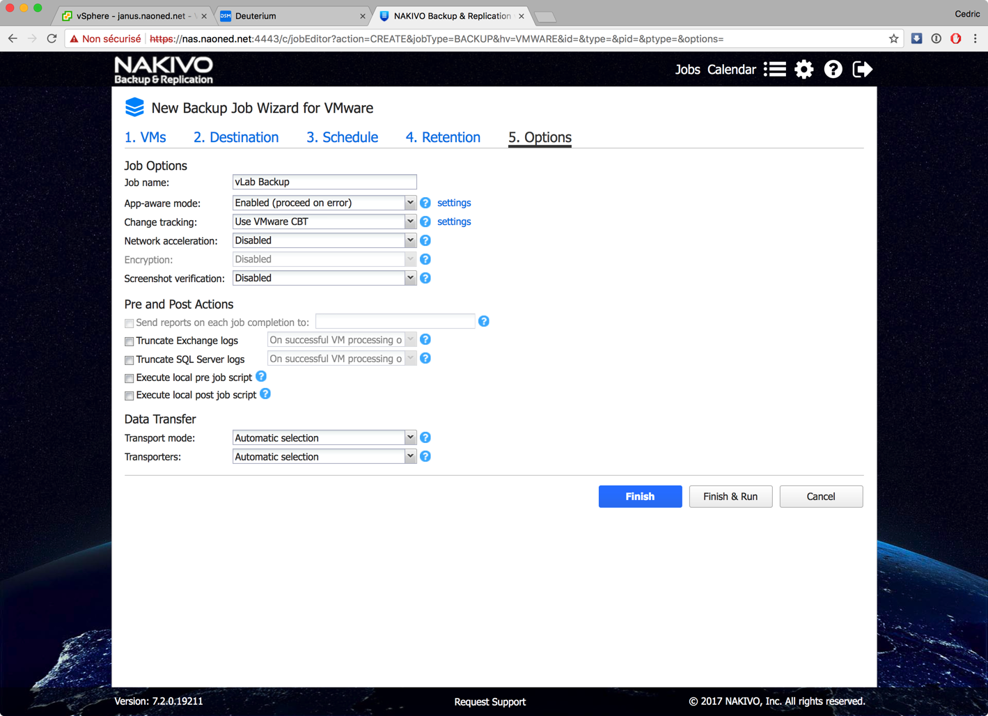 J’utilise depuis quelques mois de Nakivo B&R sur mon vLab pour sauvegarder mes divers environnements (en commençant par mes VM du quotidien : routeur, media server etc.). Cela me permet de suivre les évolutions du produit tout en sécurisant mes machines.