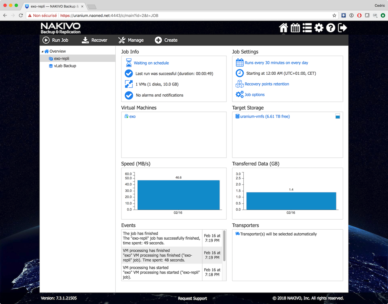 Dans l’ensemble, il Nakivo poursuit sa maturation. Pour plus d’informations, rendez-vous sur la page des releases notes , https://helpcenter.nakivo.com/display/RN/v7.3+Release+Notes.