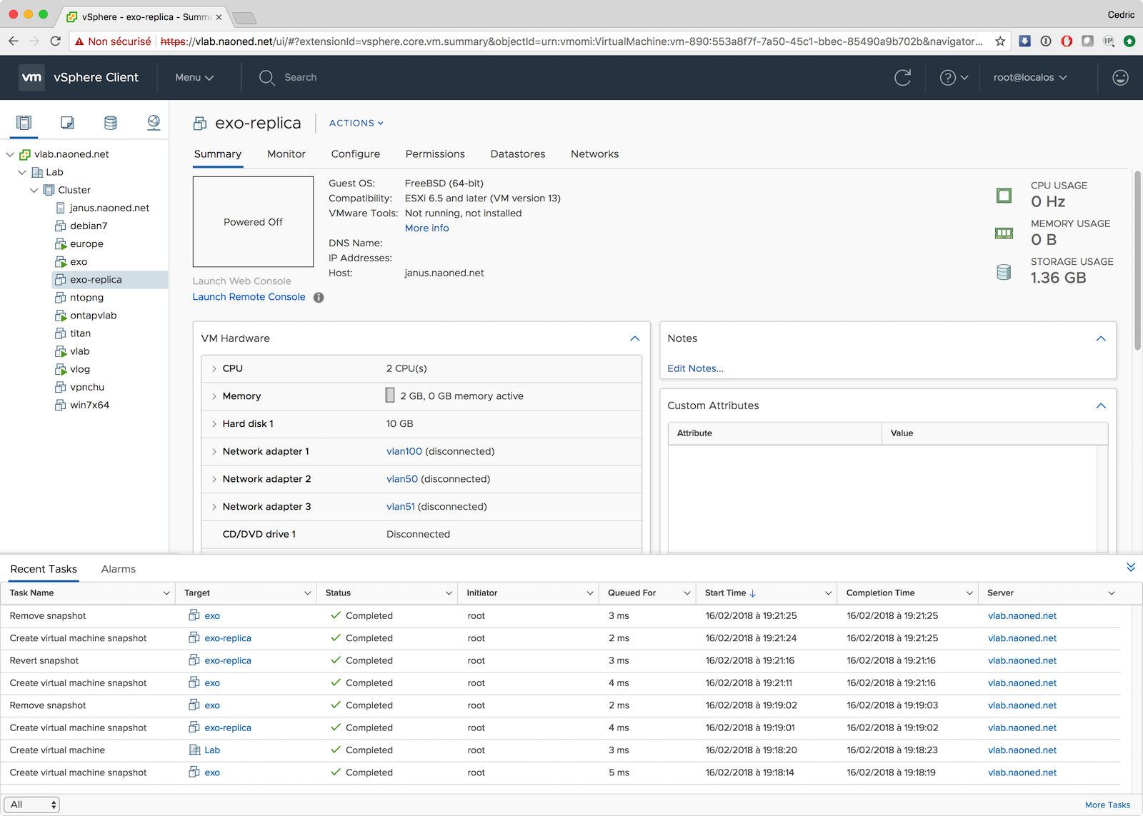 Mon use case est relativement simple : je souhaitais faire un backup très régulier du routeur pfSense principal de mon vlab (qui comporte pas mal de règles de filtrage, de routage entre VLANs, en plus de fournir l’accès multi-wan aux Internets). Or, plutôt que de faire de la sauvegarde régulière, j’ai choisi de répliquer la machine, pour pouvoir gagner du temps en cas de problème sur la source : pas besoin de restaurer, le réplica est tout de suite disponible et il suffit d’un « Power-On » pour rétablir le service (du coup, le WAF est clairement élevé, même si ma chère femme est informaticienne aussi, ce critère est à prendre en compte ^^).