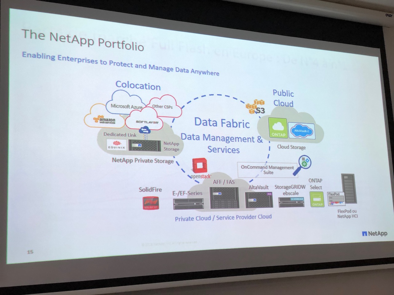 Vous le savez tous, j’imagine, le coeur historique de Netapp c’est l’enterprise NAS avec data OnTAP, son logiciel embarqué. Depuis plus de 25 ans désormais, OnTAP est connu et reconnu pour ses nombreuses qualités en matière de stabilité et de richesse fonctionnelle. Aujourd’hui OnTAP est décliné sur de nombreuses gammes hardware et continue d’évoluer. Pour autant, la société s’est énormément diversifiée et se présente maintenant comme une entreprise de « Data Management ».