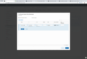 Enfin, on arrive à la partie la plus intéressante, la création du virtual serveur. Ce virtual server va être rattaché au loadbalancer précédemment créé et utilisera le pool de serveur décrit plus haut. On indique une IP d’accès, à prendre où vous le souhaitez, en fonction de vos besoins. N’oubliez pas de créer/ajuster vos règles de firewall pour donner l’accès à cette IP aux clients souhaités. Pensez- aussi que la fonction LB peut vous aider à sécuriser aussi l’accès aux serveurs au sein du pool, vous ouvrez l’accès à l’IP frontale, mais les serveurs eux-mêmes peuvent rester totalement interdits d’accès et donc protégés (hormis le service exposé bien sûr).
