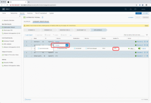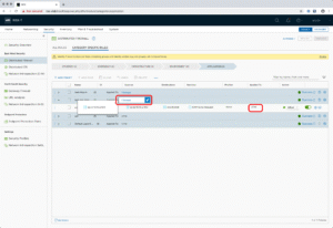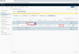 D’abord, l’Apply-To c’est quoi, fondamentalement ? Le principe est relativement simple : vous disposez d’un champ spécifique « Apply-To » qui représente en fait « la portée » des filtres et comportements que vous allez décrire sur chacune de vos règles (et sur les policies aussi, on le verra). Par défaut, vous noterez la présence du sigle DFW aka Distributed FireWall, le fameux bien nommé pare-feu intégré aux couches NSX installées sur chaque transport node. Cela signifie que par défaut toute règle s’appliquant à DFW a une portée sur l’ensemble des flux internes. On se trouve ici dans le coeur de fonctionnement de NSX-T, mais attention, il existe aussi des règles et policies Nord-Sud, qui sont le domaine des Edges Nodes. Ils on aussi des Apply-To d’ailleurs, mais vous pourrez le constater, il sont renseignés automatiquement – et non modifiables – avec le routeur sur lequel vous travaillez.