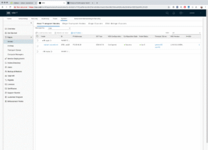 Ensuite, on va configurer notre Transport Node avec ces deux transport zones geneveTZ et vlanTZ. Vous noterez que pour le nvds-geneve-tz, on a rajouté un IPpool (qui est grisé sur le nvds-vlan-tz) qui va permettre à ce node de récupérer une ip spécifique pour son interface TEP GENEVE (TEP = Tunnel EndPoint). Vous verrez plus tard que notre Edge Node va aussi aller piocher une IP dans ce pool afin justement de pouvoir discuter GENEVE avec le transport node.