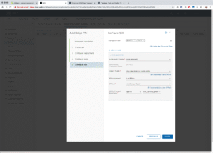 On s’attaque maintenant à la création de la Edge Node. Cette virtual appliance (qui peut également être déployée en bare-metal dans des environnements ou les débits réseau sont très importants) va s’occuper d’héberger les différents distributed routers (tier0 et éventuellement tier1). Normalement, il faut en déployer au moins deux pour pouvoir assurer une disponibilité suffisante à ce composant critique de NSX-T, mais on va se contenter d’une seule instance.