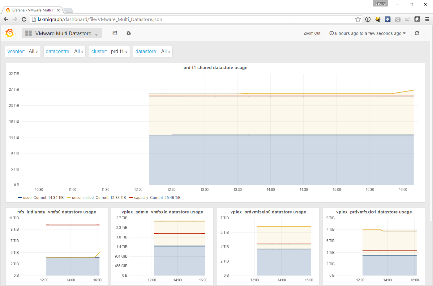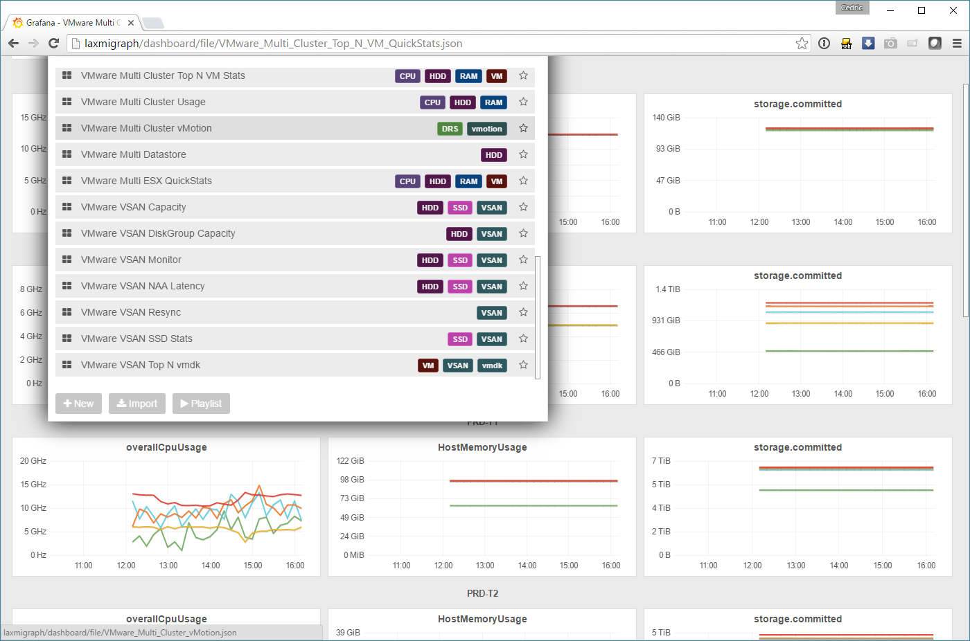 On y trouve en particulier des tableaux de bord de l’activité de chaque cluster, des tableaux de bord plus orientés « forecast », et même des tableaux de bord globaux sur toute l’infra.