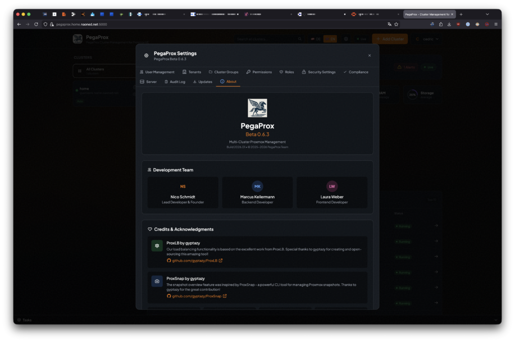 J’ai eu le plaisir, en entendant parler de PegaProx, de découvrir que Florian (alias Gyptazy), le développeur de ProxLB, y était lié. J’ai d’ailleurs eu le plaisir d’échanger avec lui sur LinkedIn. Il m’a précisé que l’équipe de PegaProx a intégré dans leur code plusieurs de ses projets open source, publiés sur GitHub, comme ProxLB, mais aussi ProxCLMC (le détecteur d’EVC) et ProxSnap (le gestionnaire de snapshots). N’hésitez pas à faire un tour sur son dépôt, c’est vraiment passionnant ! Merci à lui pour cet échange. 😊
