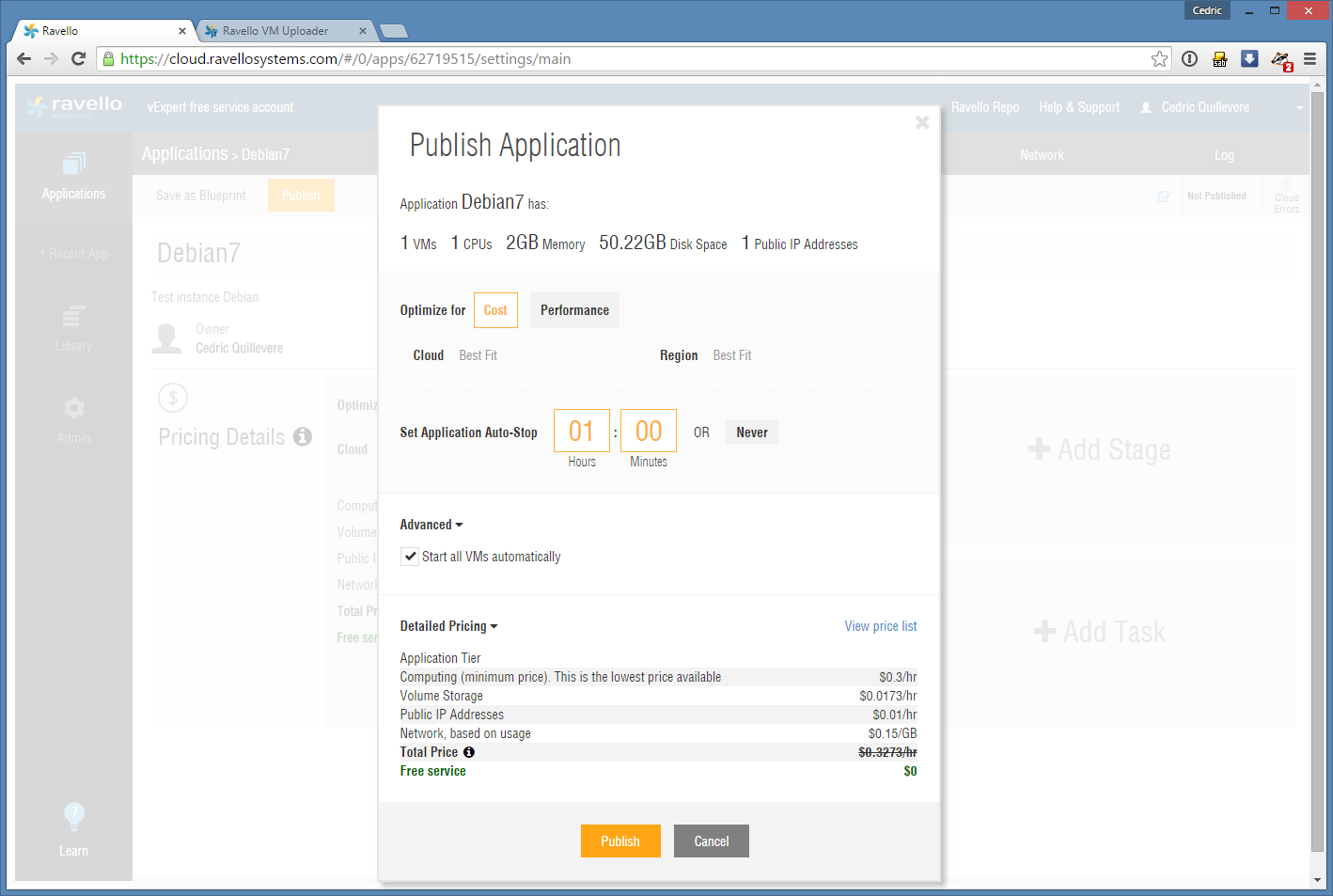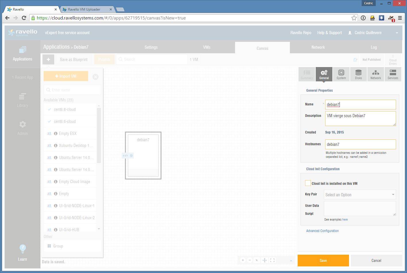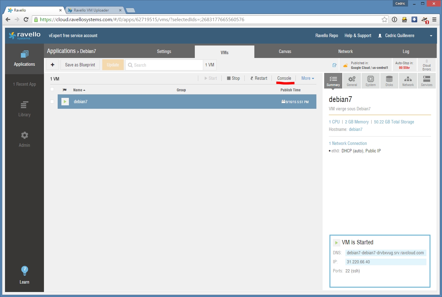 1. Upload de l’image de debian 7 chez Ravello