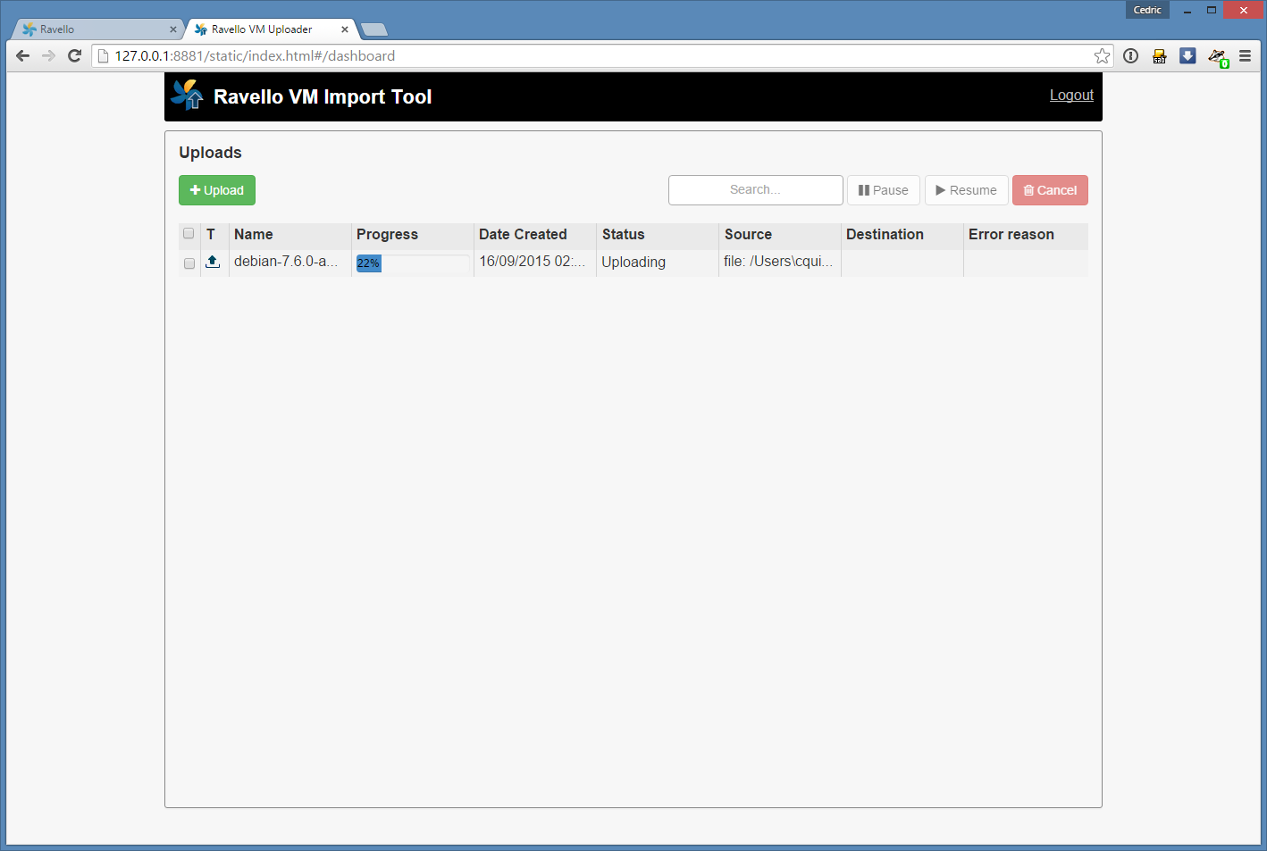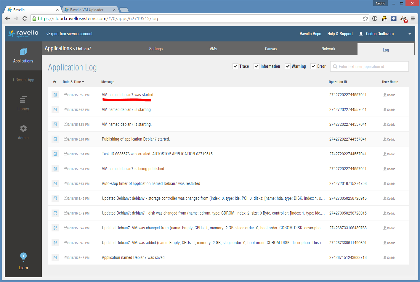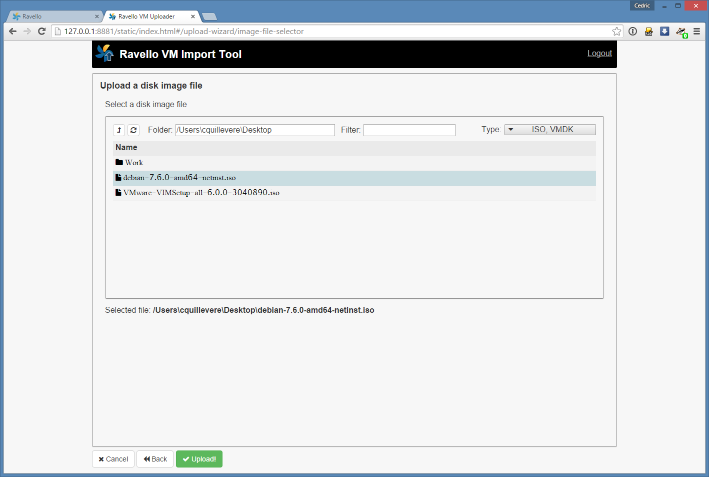 1. Upload de l’image de debian 7 chez Ravello