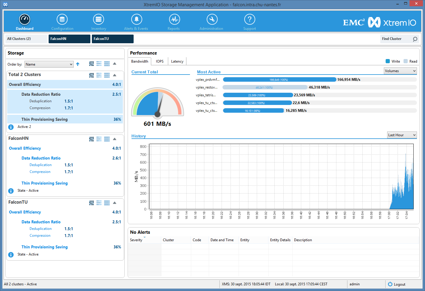 Je vais donc vous présenter les divers étapes, que j’ai réalisé chez nous, qui permettent depuis XtremIO 4.0 de ne plus utiliser qu’une seule console de gestion XMS pour l’ensemble des clusters que vous possédez. Malgré mes avertissements, le risque est somme toute quasi nul sur votre production XtremIO car nous ne touchons qu’à la console, et pas du tout aux controleurs eux-même. D’autre part, il est peut-être utile, dans certaines configurations de maintenir une vraie séparation en terme de management, donc ne vous précipitez pas et pesez le pour et le contre avant de démarrer.
