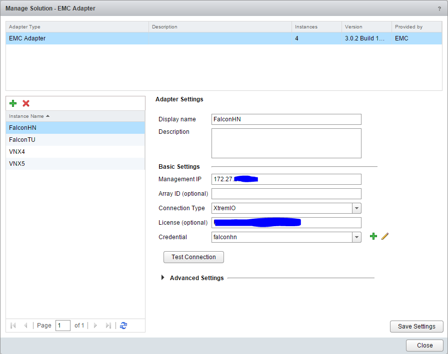 Une fois le plug-in installé, vous avez donc à votre disposition un nouvel adaptateur EMC, à l’intérieur duquel vous devez configurer chaque baie ou chaque équipement EMC :