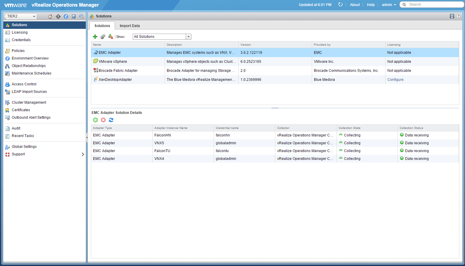 EMC Storage Analytics (aka ESA) se présente sous la forme d’un plug-in pour vRO à installer au sein d’une instance existante. Il s’intègre donc nativement au produit de VMWare et vient rajouter un adaptateur, qu’il s’agit ensuite de configurer. Je ne détaille pas ici la procédure d’installation d’ESA, simple et totalement standardisée, mais si vous souhaitez en savoir un peu plus, vous pouvez également consulter mon article sur l’adaptateur Brocade, également disponible, que j’avais testé il y a quelques semaines.