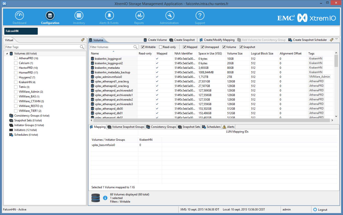 On constate aussi de nouvelles possibilités concernant la gestion des snapshots (évidemment), on peut désormais créer un snap, mais aussi le rafraichir à partir d’un volume (ou d’une autre snap du volume initial). Il est possible aussi de faire un rollback d’un volume à partir d’un snapshot réalisé précédemment. Bref, tout l’attirail est là pour donner encore plus de puissance à XtremIO en matière de gestion de volumes. Pour avoir commencé à « jouer » un peu avec ces nouveaux mécanismes, les opérations sont toujours instantanées et très souples.