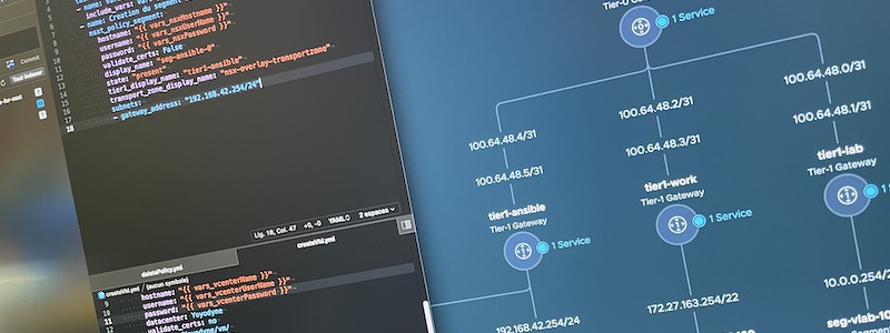 Deuxième épisode de cette longue route dans la maitrise de l’automatisation avec Ansible, on s’attaque maintenant au design réseau NSX-T. Là, on change de braquet par rapport à la création de petites VM dans leur coin, il s’agit de construire des desgins cohérents et ordonnés de segments, routeurs, règles DFW, services DHCP et j’en passe. Ca rigole plus du tout (en fait si, on continue à s’amuser, rassurez-vous).