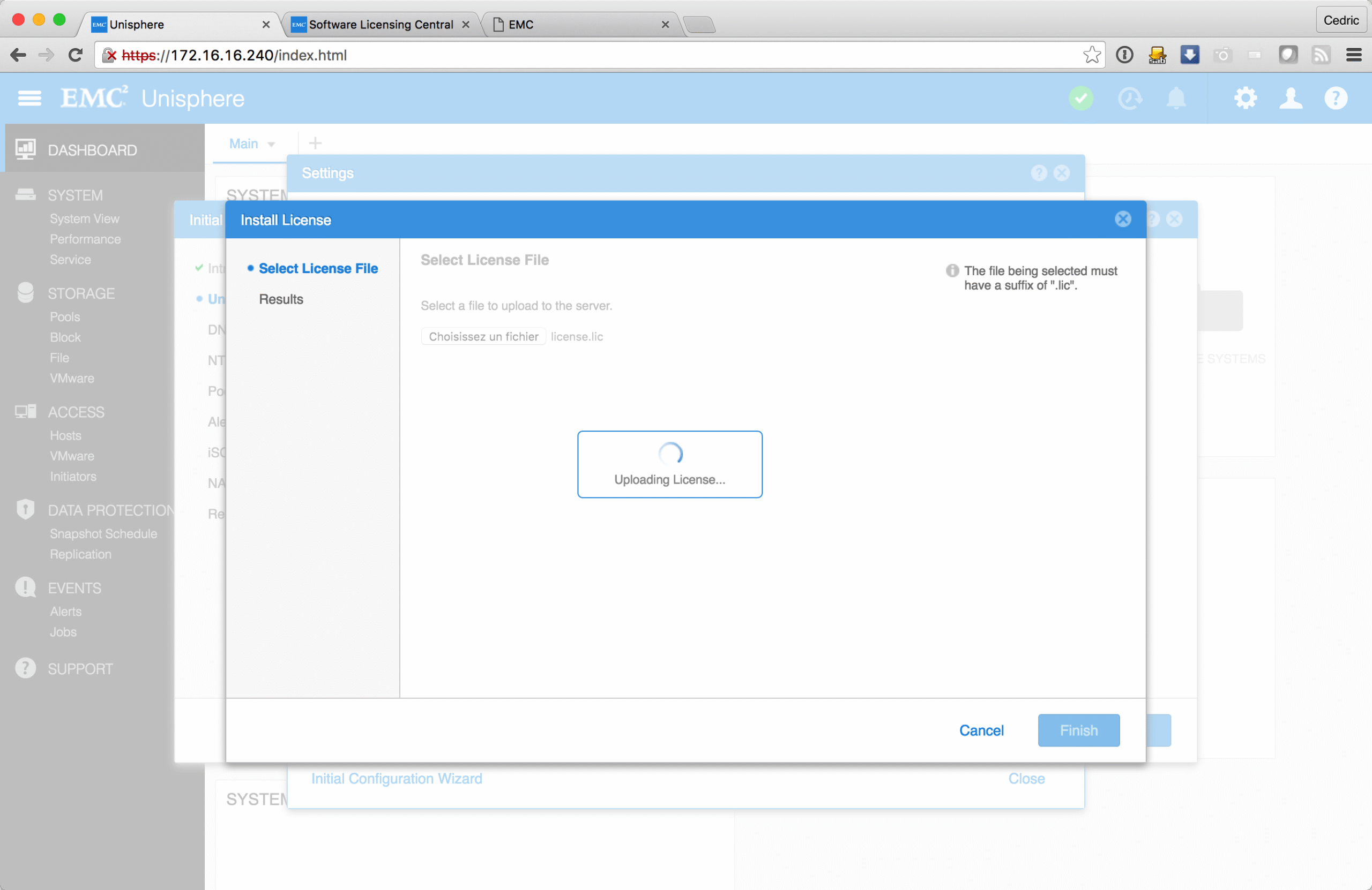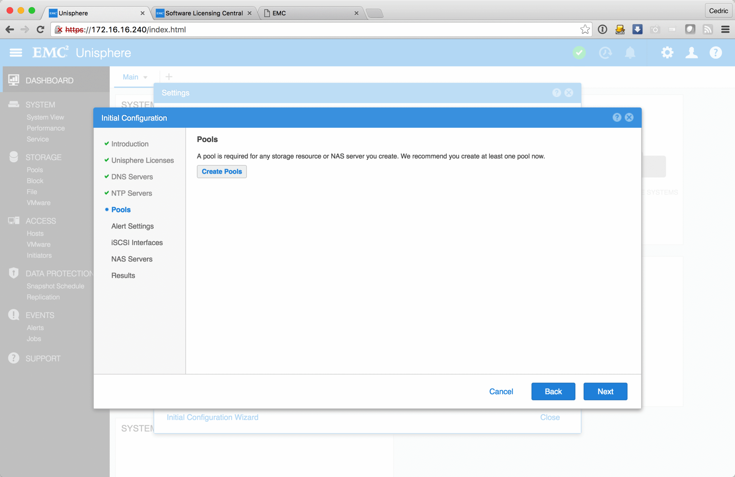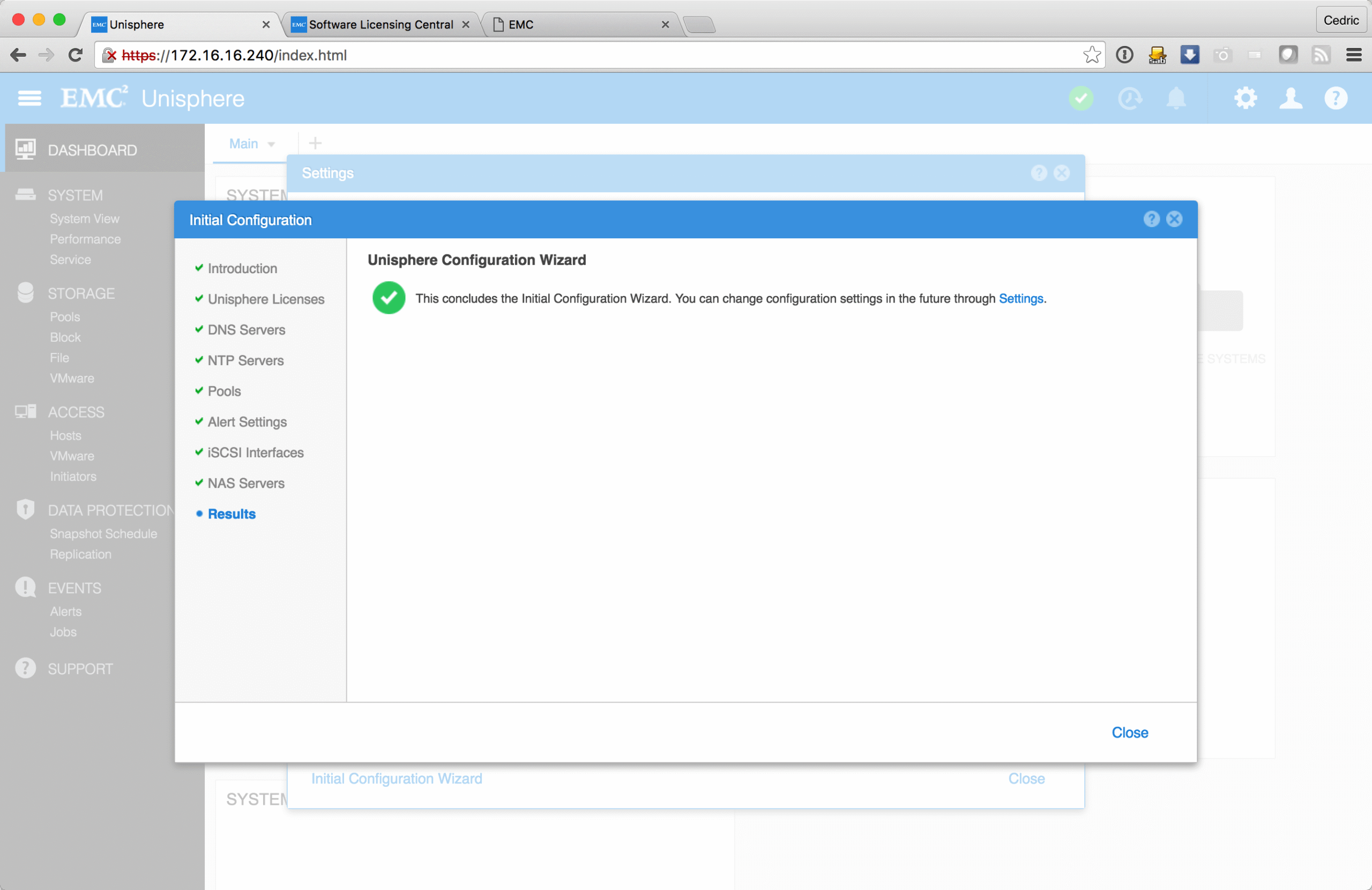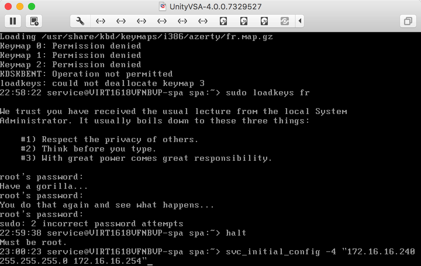 J’ai un véritable soucis avec le Unity VSA; quand je démarre la baie elle va en mode service. Les onglets sont inactifs lorsque je me connecte.