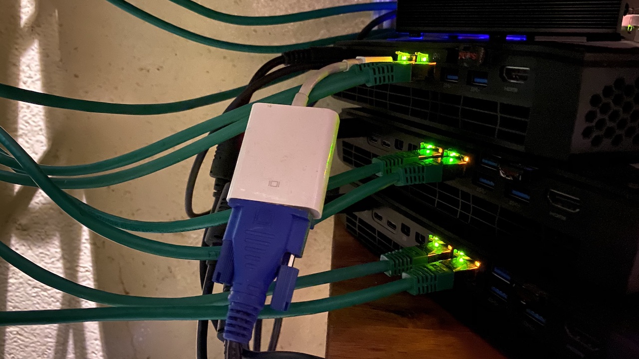 Voici aujourd’hui le setup que j’ai construit avec les 3 NUC et le switch Mikrotik.