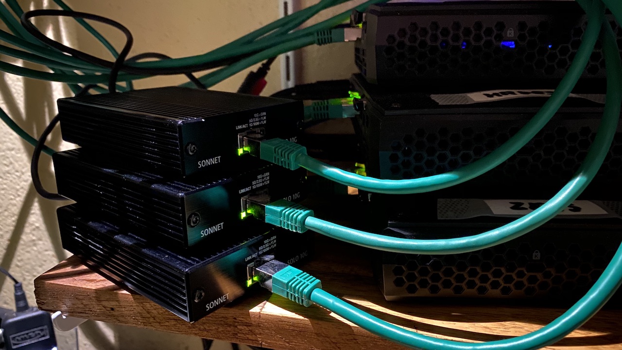 Après, on peut bien sûr utiliser du multimode, mais faut pouvoir le brancher sur tes machines. Faudrait trouver des adaptateurs TB3 vers réseau 10Gbit en SFP aussi de l’autre coté. Gagner quelques centaines de micro-secondes sur un vLab, bof bof. Déjà le 10G ça change la vie 🙂