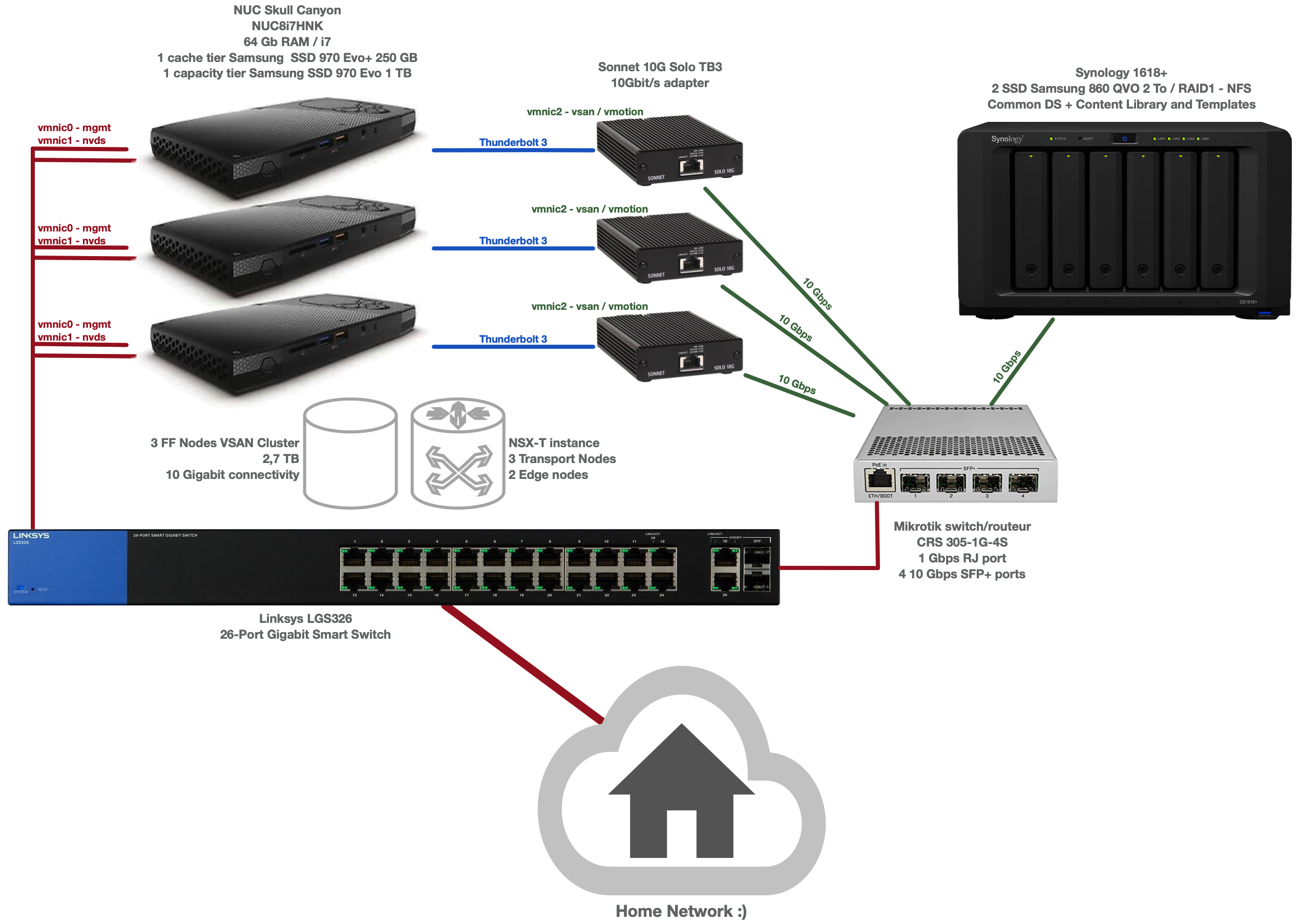 Le principal pour moi, sans passer sur du 10G (pas la peine), c’est surtout booster tes NUC en RAM et si tu as encore des sous, passer tes disques capacitifs VSAN en 1To par exemple. Après, ton objectif c’est quoi ? Pas facile de répondre sans savoir quel type d’infra tu veux tester 🙂