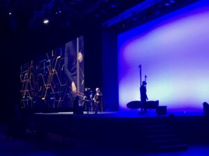 Ambiance psychédélique pendant l’arrivée des milliers de personnes venu assister à la grande cérémonie d’ouverture de cette édition 2017. Le show démarre avec une introduction musicale et visuelle très originale : un artiste équipé d’un casque VR HTC Vive utilisant la palette graphique TiltBrush réalise des animations live pendant que deux violoncellistes assurent une performance sonore particulièrement puissante.