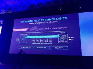 Entre temps, le CEO de VMware va rappeler les nombreux partenariats technologiques conclus depuis 18 mois avec Dell EMC : vSAN ready nodes, VxRail et VxRack SDDC. Il va également détailler l’alliance de VMware avec IBM et l’intégration très récente de Dell EMC dans celle-ci notamment pour sa contribution hardware (oui, je vous le confirme il faut encore des bécanes physiques pour faire de l’informatique ^^). Dans la foulée, Pat fait l’annonce de VMware HCX Technologies, issue justement de ce travail commun : un ensemble de technologies et de méthodes dédiées pour les entreprises afin de simplifier leur transition vers le cloud. Enfin, histoire d’enfoncer le clou, un nouveau programme de certification voit le jour, « VMware Cloud Verified », qui permettra d’identifier tous les cloud providers supportant ces technologies, gages de fiabilité et de conformité avec l’écosystème de VMware.