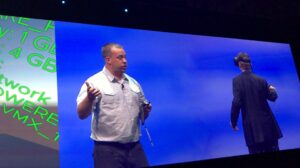 Et là, tout le monde était bien assis, à écouter sagement quand … Alan Renouf, le blogger et « Senior Product Line Manager » bien connu de la blogo-sphère VMware arrive sur scène (accompagné d’un tonnerre d’applaudissements au passage) et propose à Pat Gelsinger de réaliser une expérience de « Virtual Virtual DataCenter » ! Pendant une dizaine de minutes, le CEO de VMware va donc utiliser un casque de réalité virtuelle pour jouer le rôle de l’administrateur système dans sa bulle : déplacement de VM, arrêt/relance d’une d’entre elles, démarrage d’un SDDC complet dans le cloud Amazon … bref, du fun, mais aussi, en arrière plan, un démonstration bluffante de la puissance des API VMware, notamment autour du Cloud et de vSphere.