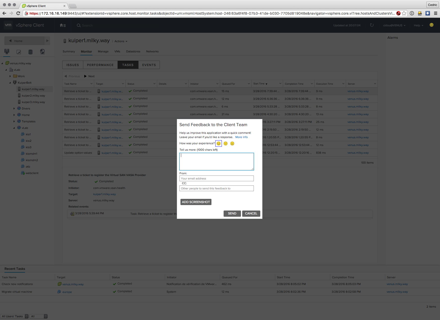 Nous ne pouvons que souhaiter ardemment que la team développant le nouveau vSphere web client HTML5 nous sorte des versions toutes les 3/4 semaines pour voir s’approcher progressivement l’échéance de son entrée en production 🙂