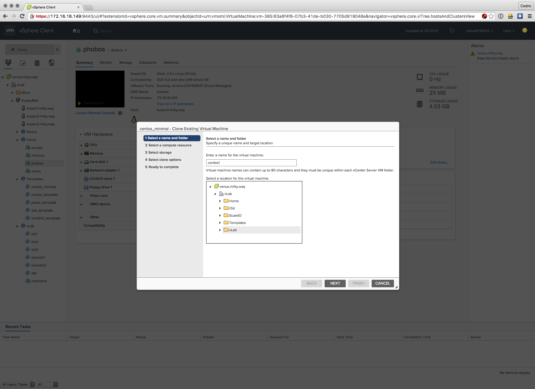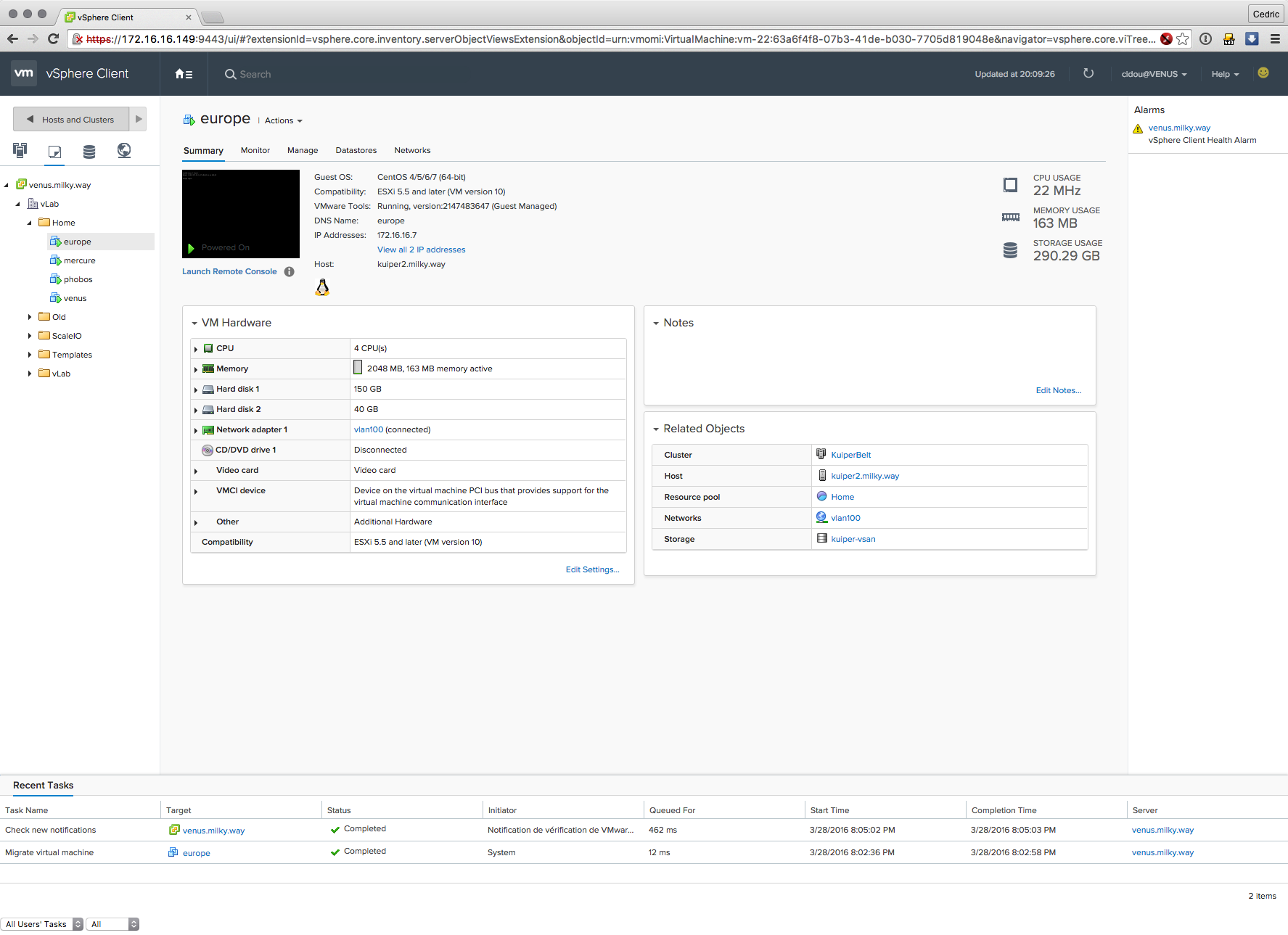 C’était l’annonce de ce soir (en France), VMWare vient de publier, par la voie de ses labs « Flings » la première version publique du futur client full HTML5 de vSphere, destiné, à n’en pas douter, à remplacer le client web actuel et, nous l’espérons tous, enfin tirer un trait à la fois sur Flash mais aussi sur notre tentation d’avoir dans un coin de nos stations d’administration le bon vieux client lourd, toujours bon pied bon oeil et dont l’ergonomie et la réactivité est encore irremplaçable pour certaines tâches quotidiennes.