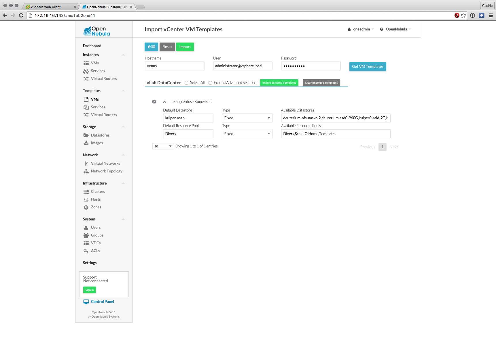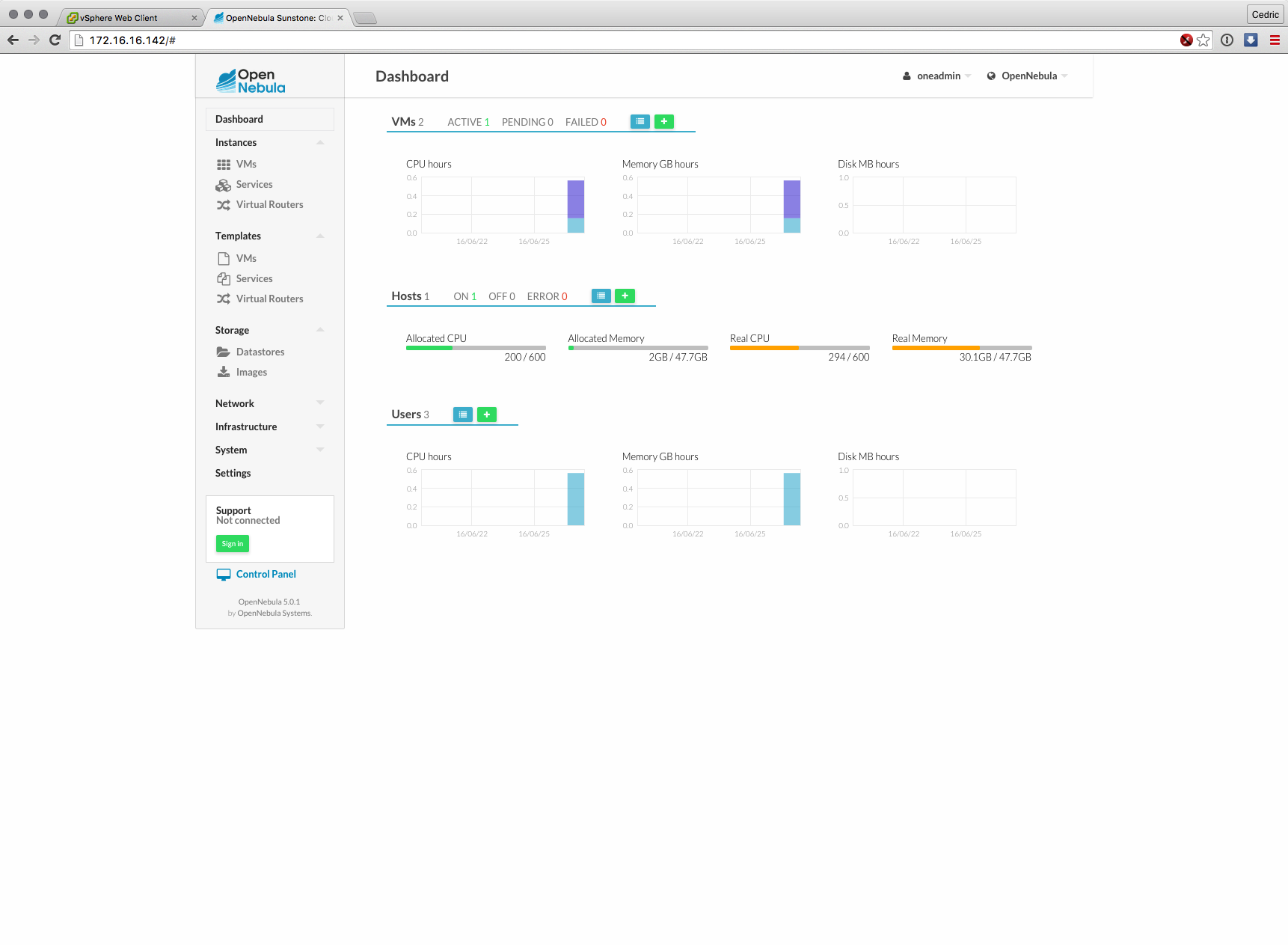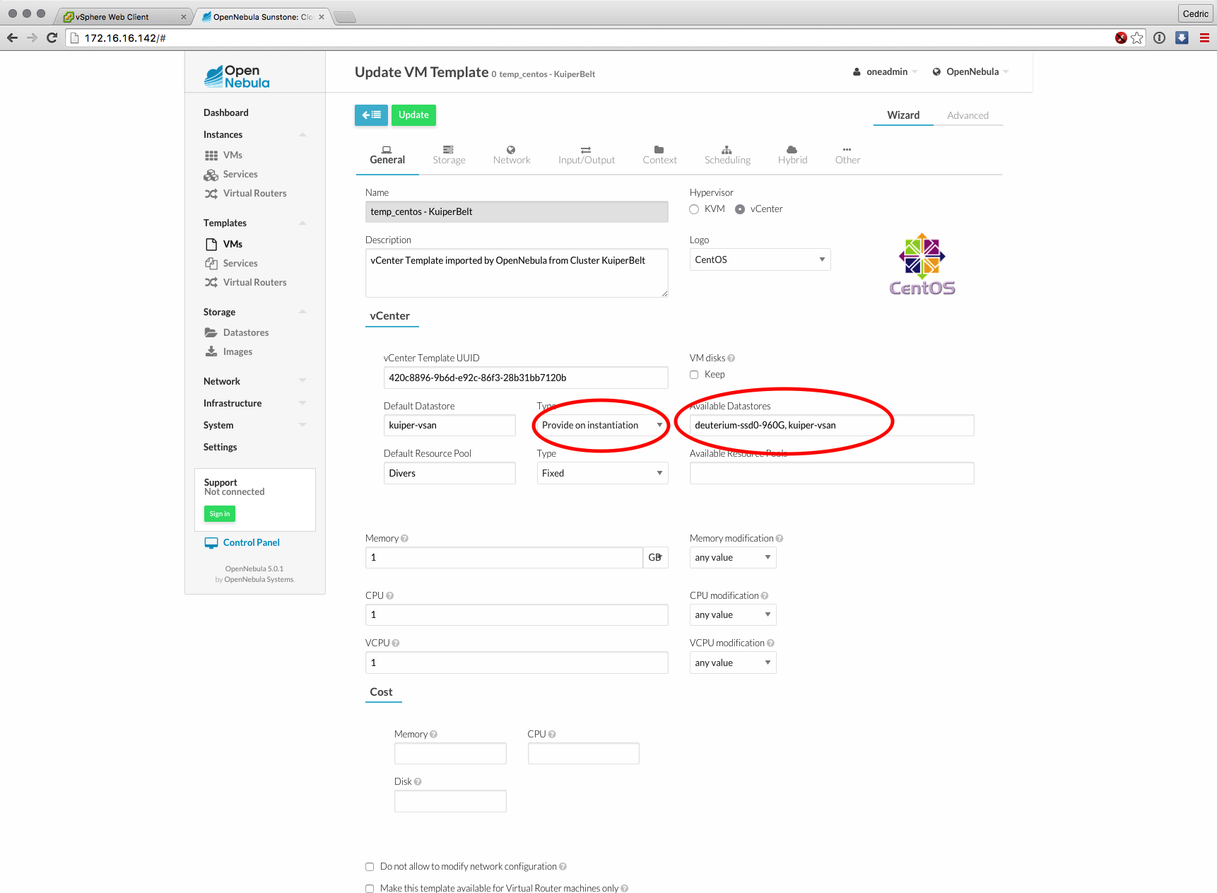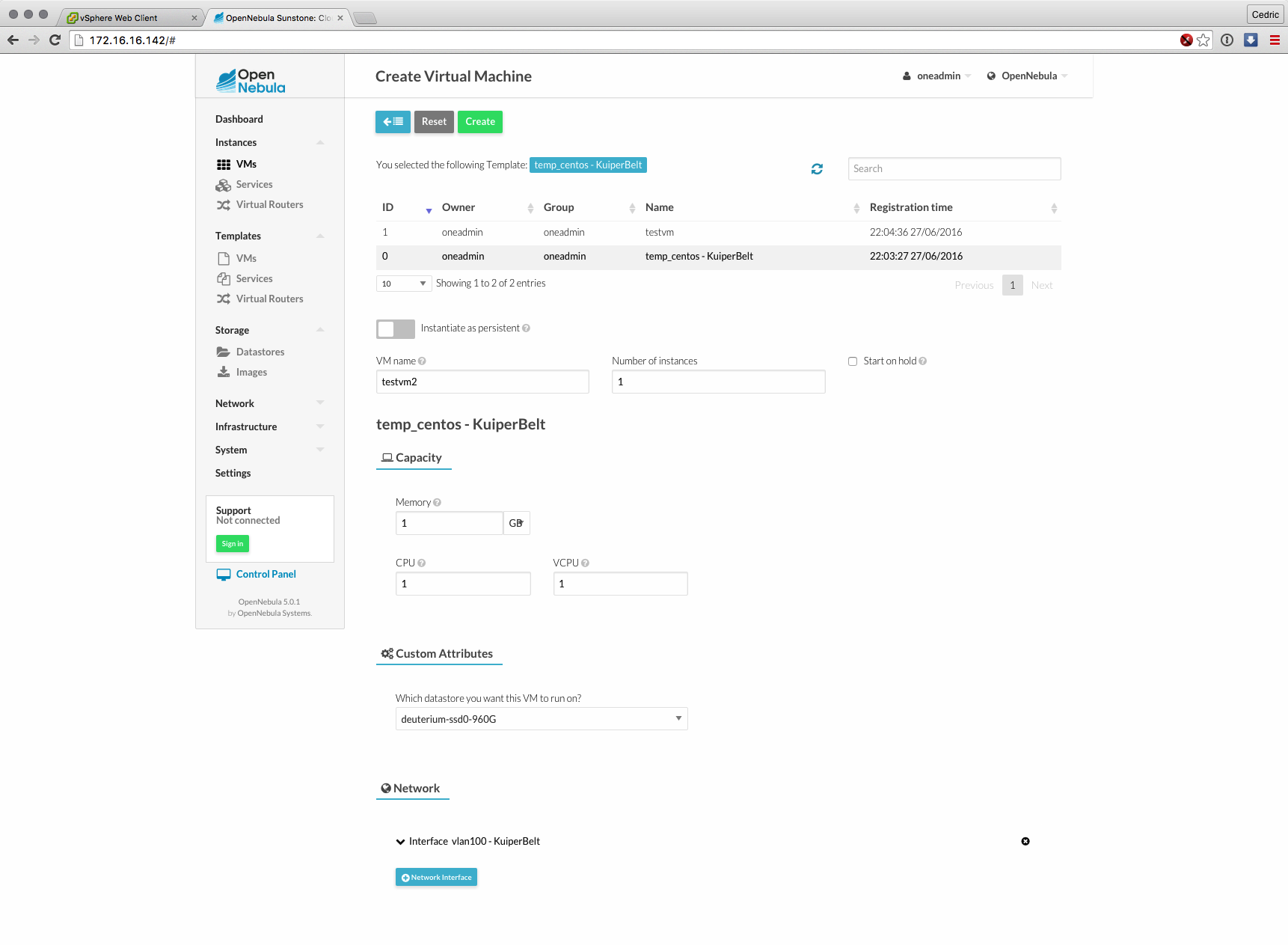 Cette nouvelle version majeure basée sur les composants de OpenNebula 5.0 (son moteur) est distribuée sous forme d’appliance virtuelle, déployable en quelques minutes et dont l’interface et les fonctions ont grandement évolué : gestion des datastores vSphere, interface plus claire et plus logique à certains égards, bref, que du bon sur le papier.