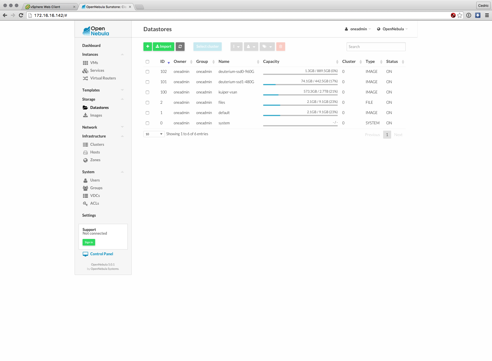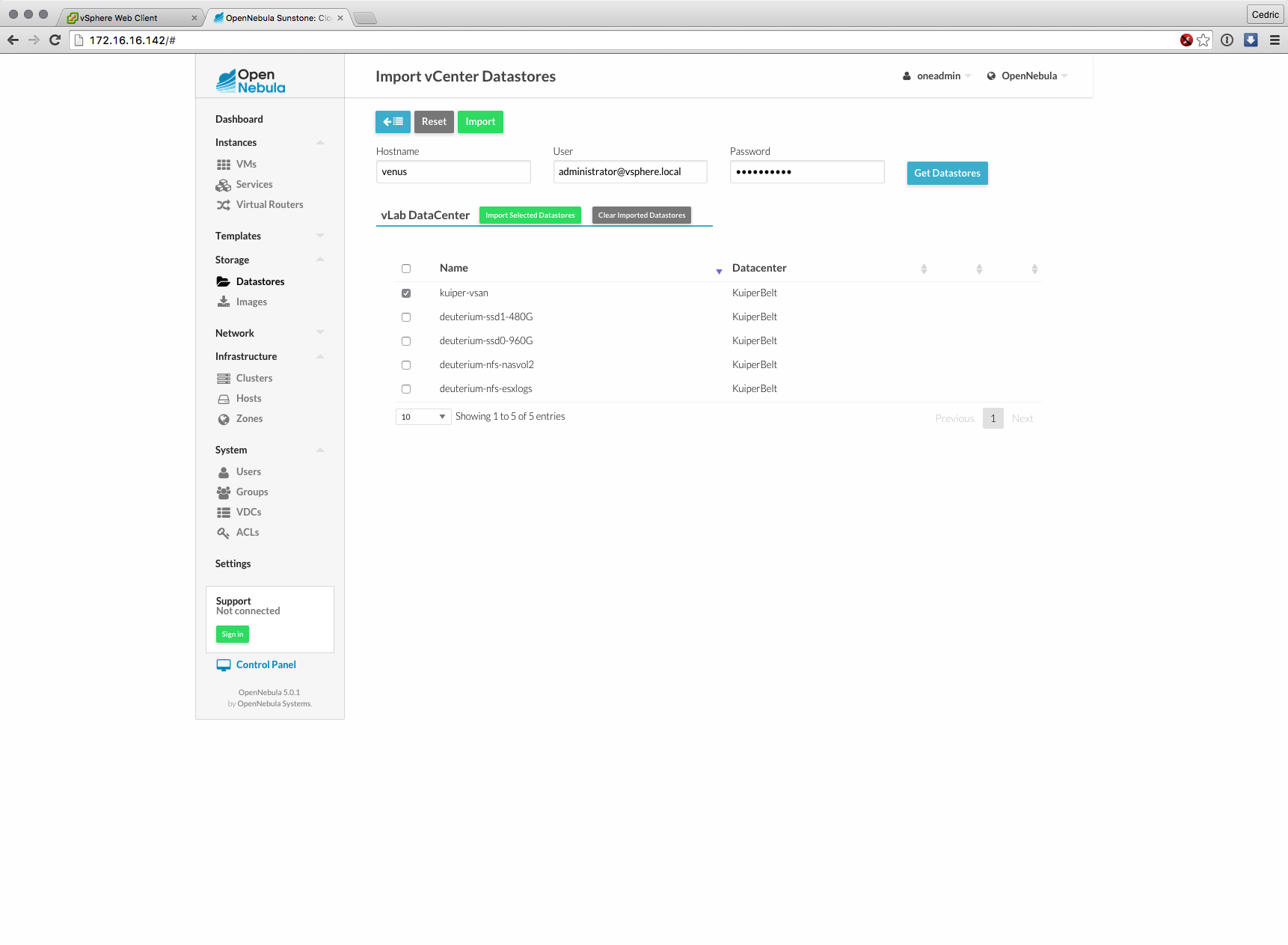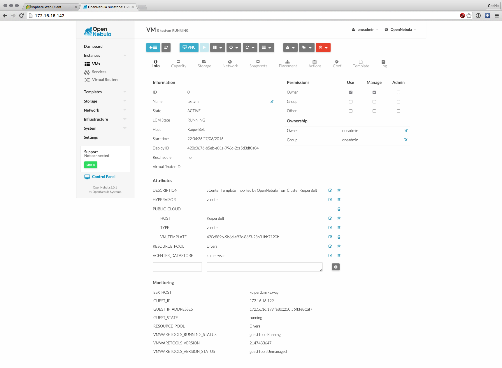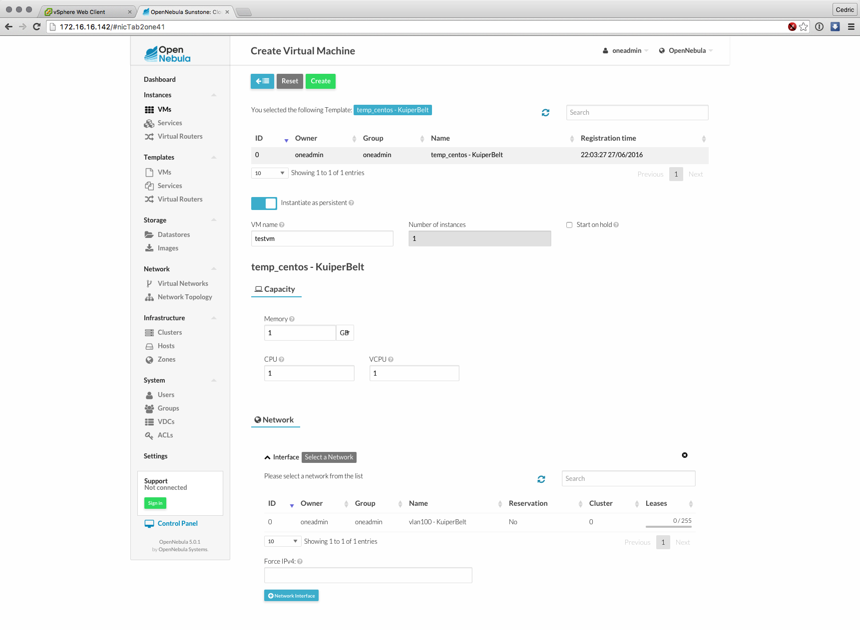 Cette nouvelle version majeure basée sur les composants de OpenNebula 5.0 (son moteur) est distribuée sous forme d’appliance virtuelle, déployable en quelques minutes et dont l’interface et les fonctions ont grandement évolué : gestion des datastores vSphere, interface plus claire et plus logique à certains égards, bref, que du bon sur le papier.