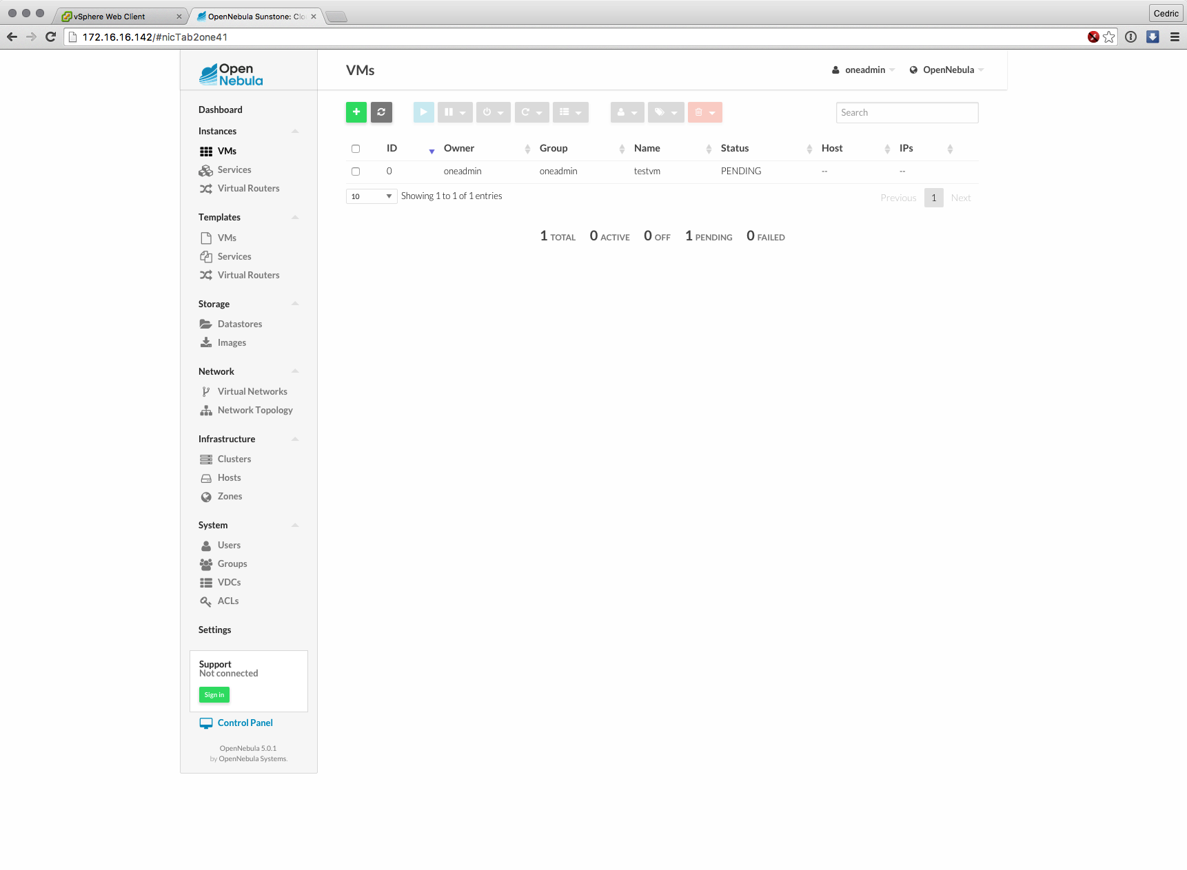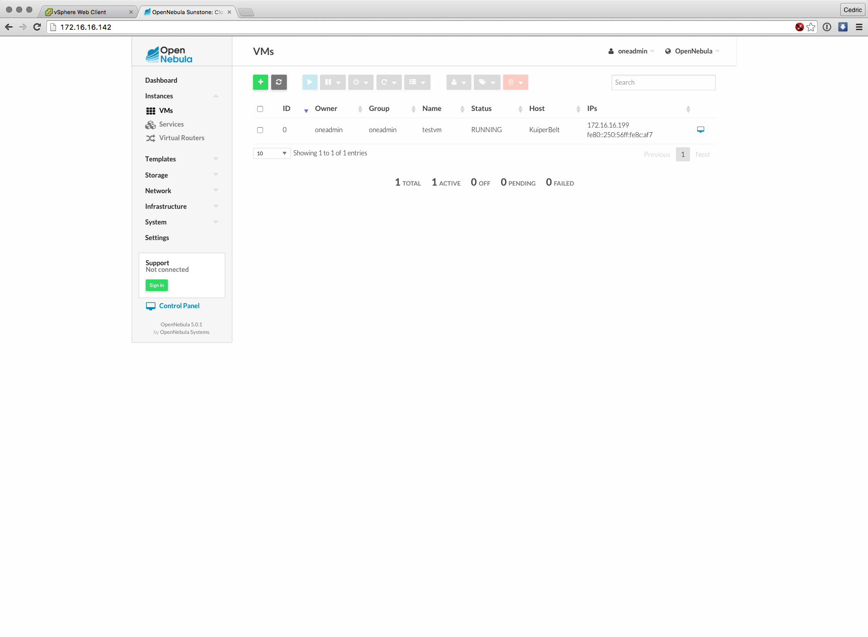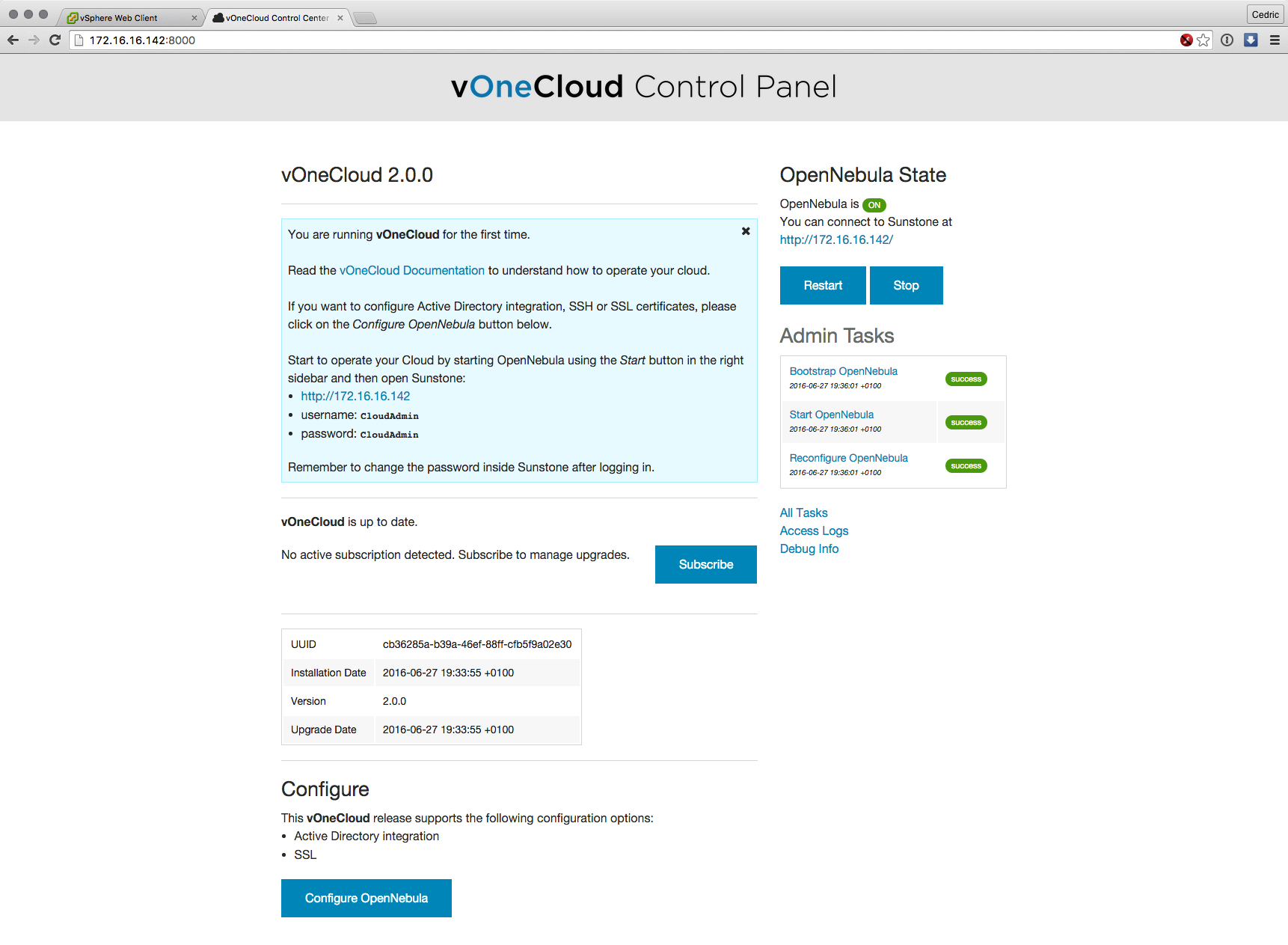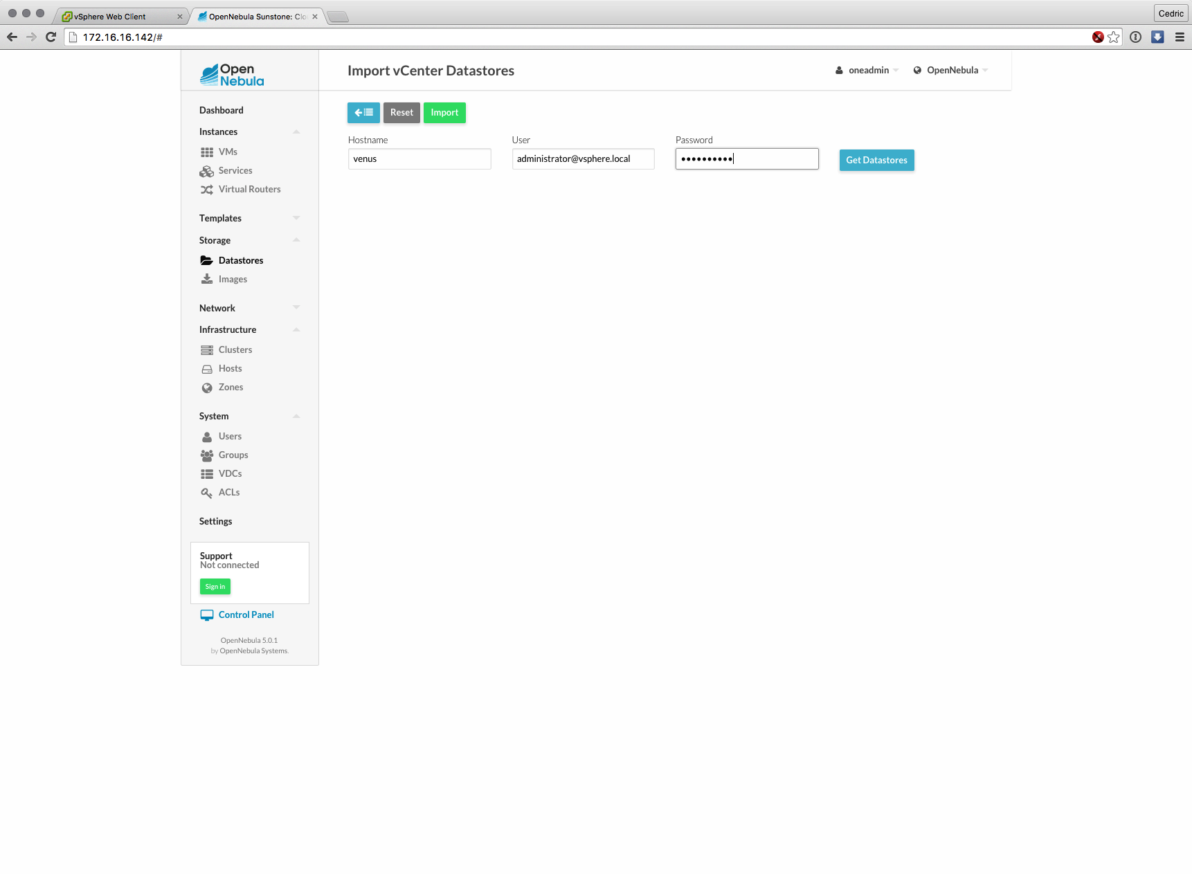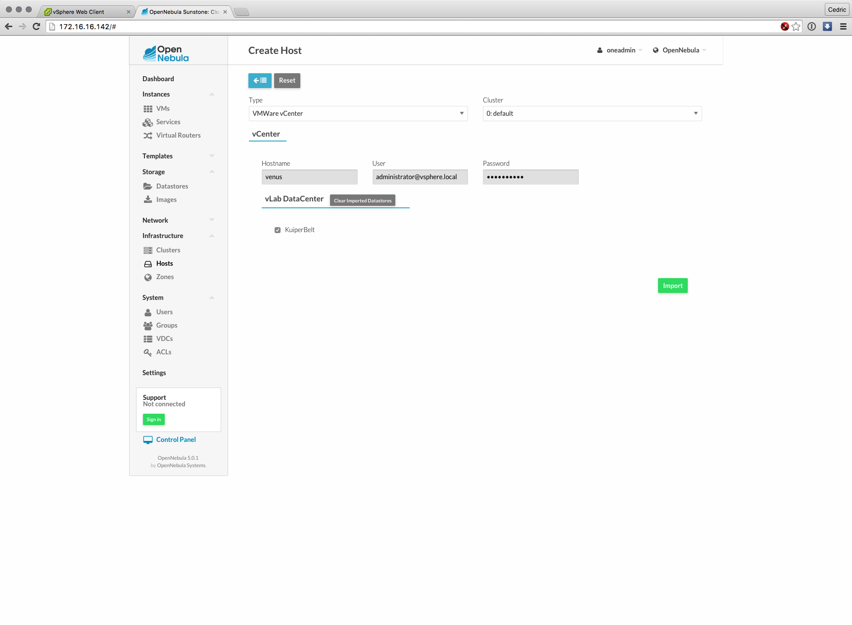 Cette nouvelle version majeure basée sur les composants de OpenNebula 5.0 (son moteur) est distribuée sous forme d’appliance virtuelle, déployable en quelques minutes et dont l’interface et les fonctions ont grandement évolué : gestion des datastores vSphere, interface plus claire et plus logique à certains égards, bref, que du bon sur le papier.