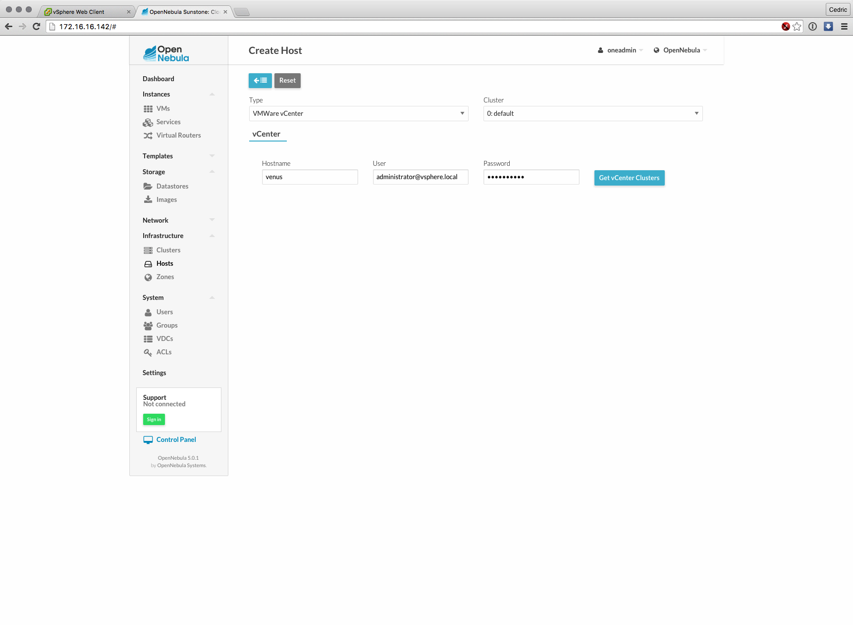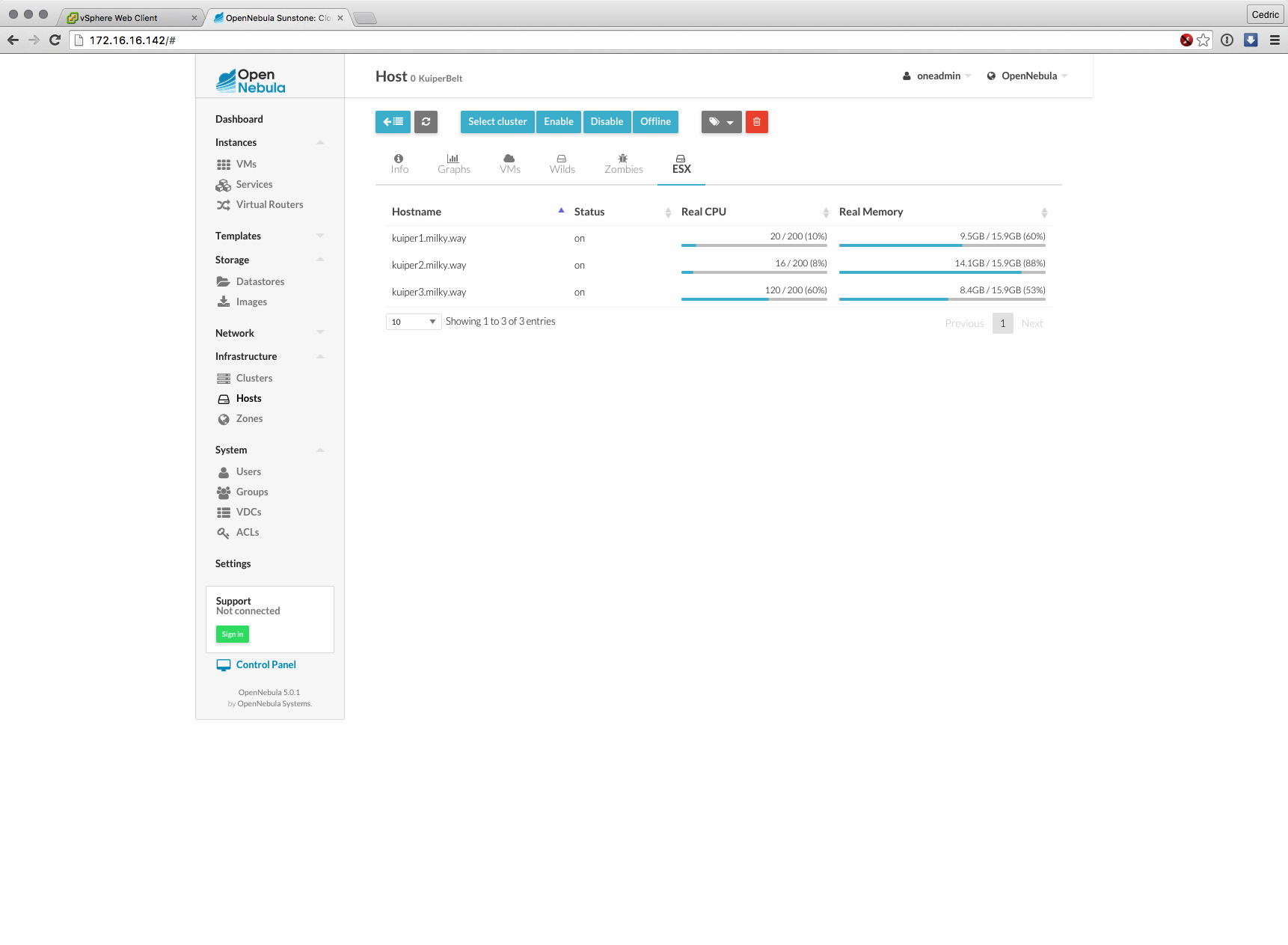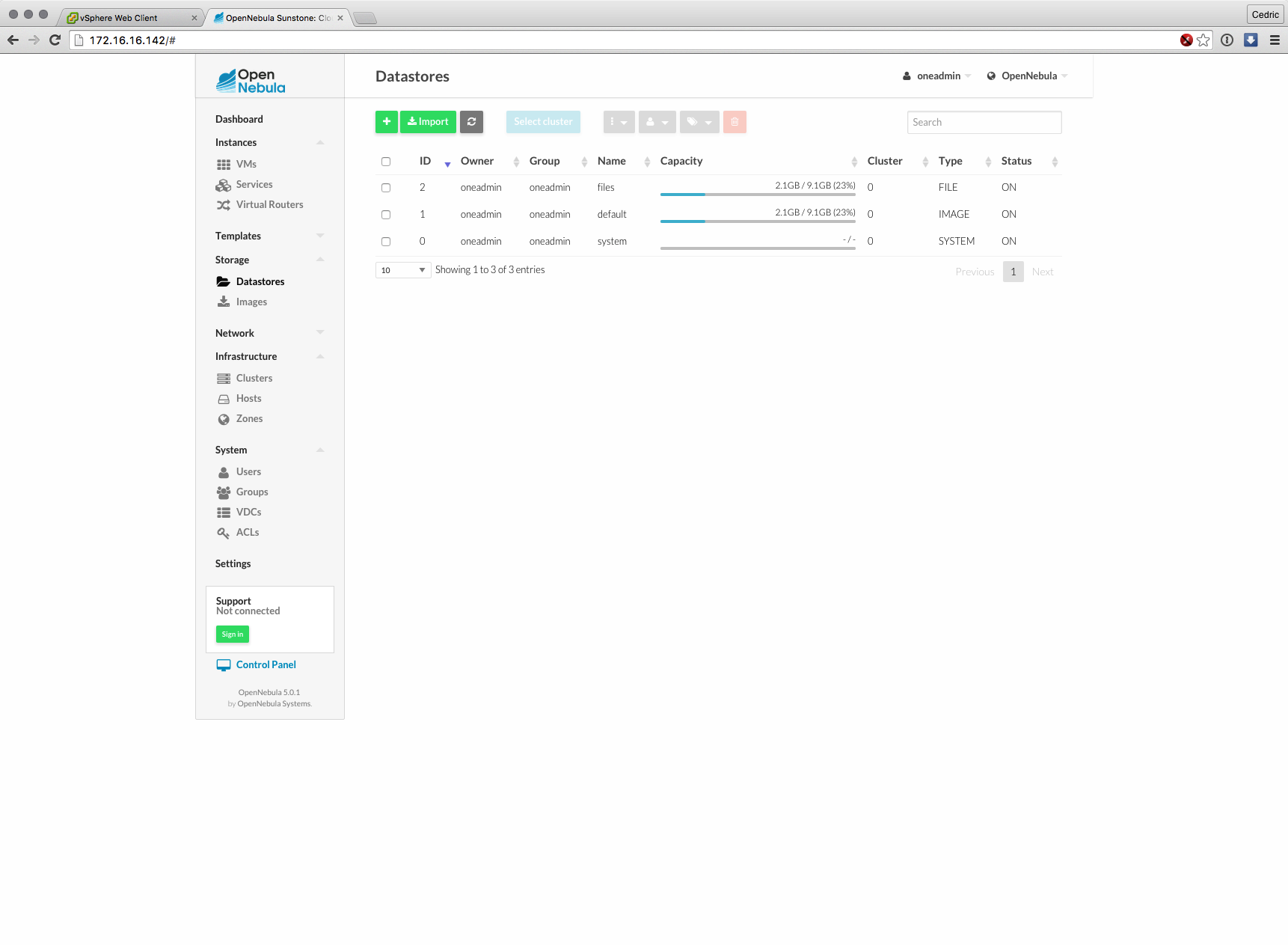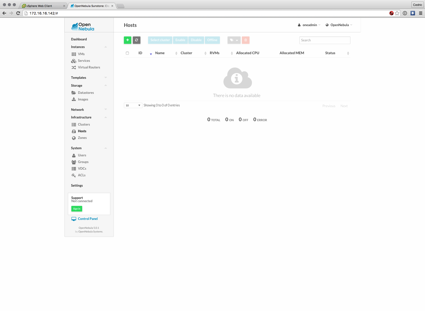 Cette nouvelle version majeure basée sur les composants de OpenNebula 5.0 (son moteur) est distribuée sous forme d’appliance virtuelle, déployable en quelques minutes et dont l’interface et les fonctions ont grandement évolué : gestion des datastores vSphere, interface plus claire et plus logique à certains égards, bref, que du bon sur le papier.