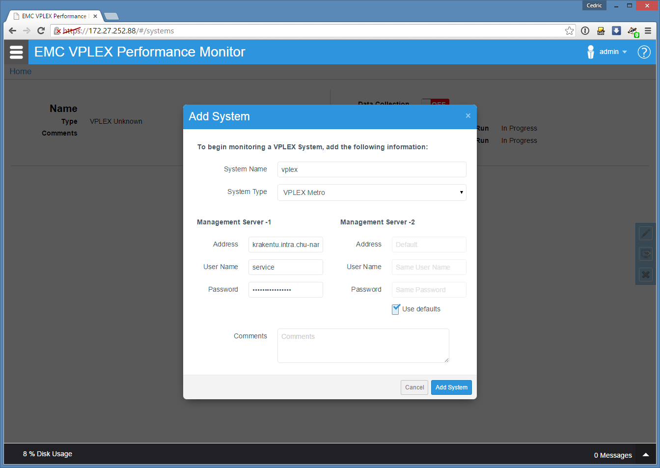 Comme vous l’aurez sans doute compris, nous n’avons pas encore cette version en production, nous attendons le go d’EMC pour y passer. Malgré tout, je n’ai pas pu m’empêcher de jeter un oeil à son mode d’installation et son interface de base. Après l’installation de l’ova et son paramétrage IP initial (comme toutes les solution EMC ou presque, désormais), il vous suffit de vous connecter au site d’administration avec le user admin/admin pour accéder aux fonctions. Je n’ai pas pu aller très loin, mais j’ai quand même essayé de voir si d’aventure la 5.4 ne lui suffirait pas… sans succès, vous le verrez dans ces copies d’écran: