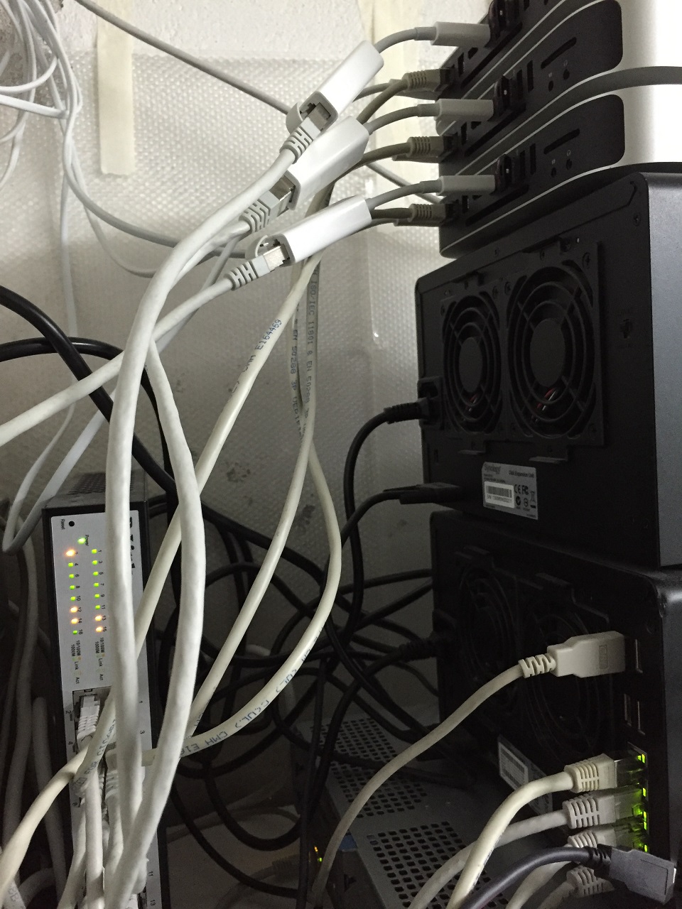 Avant toute chose, rappelez-vous que mon vLab est relativement limité dans ses performances : petites machines, petits disques, 1 Gbit/s de réseau. De plus chaque Mac Mini est connecté en direct sur le NAS, ce qui l’autorise à tirer quasiment 110 Mo/s sur la source iSCSI en cas de besoin.