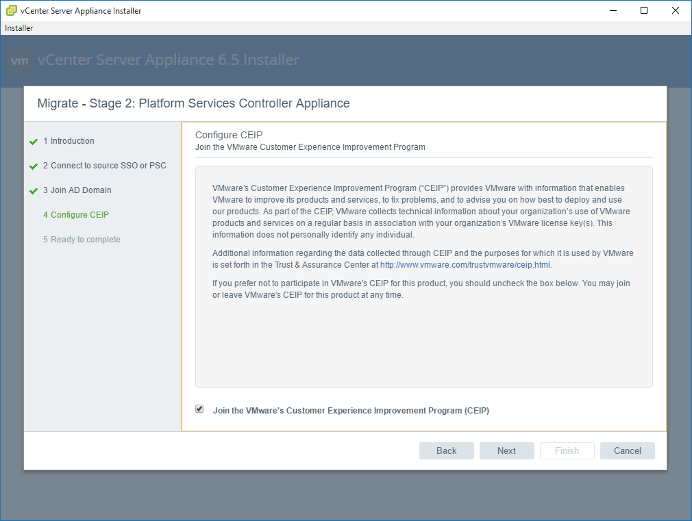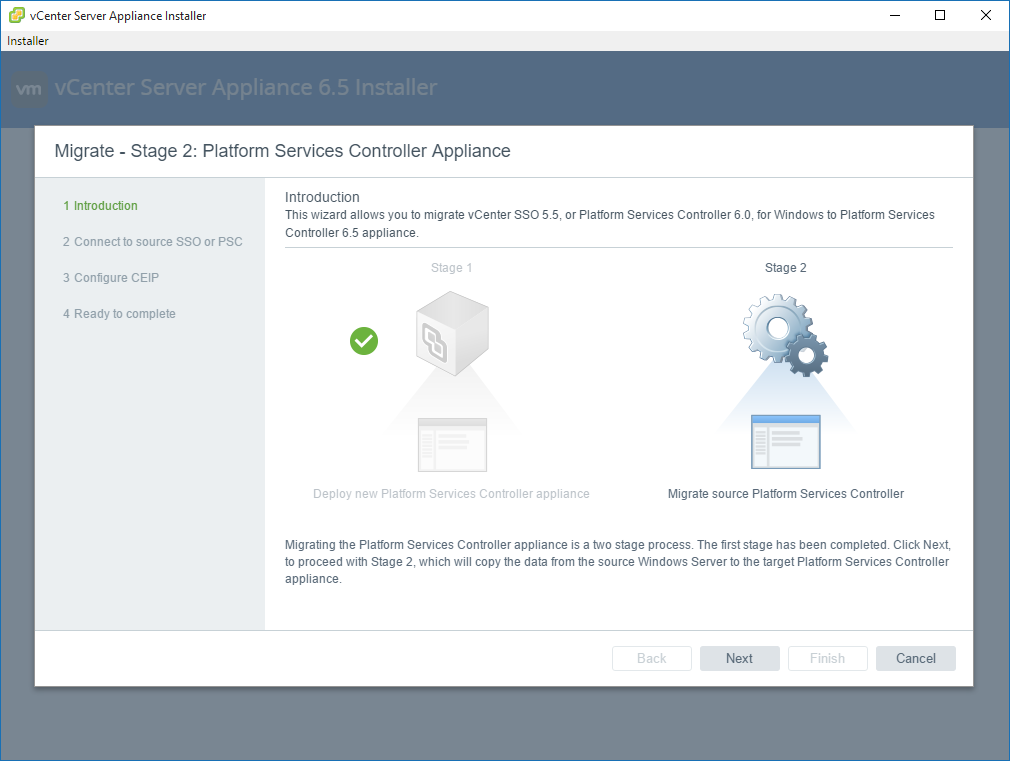 Ce premier billet vous présente la première étape : la migration du PSC Windows vers un PSC en mode appliance et en version 6.5. On va utiliser pour cela l’assistant de migration, une des fonctions phares de cette édition.